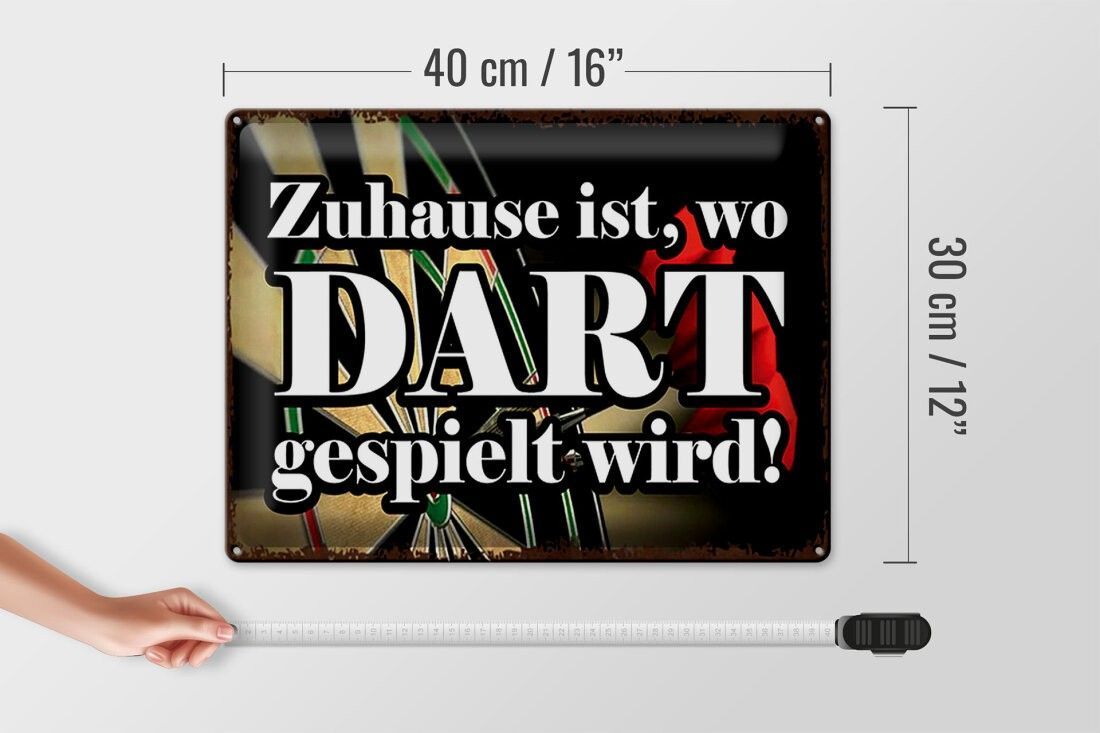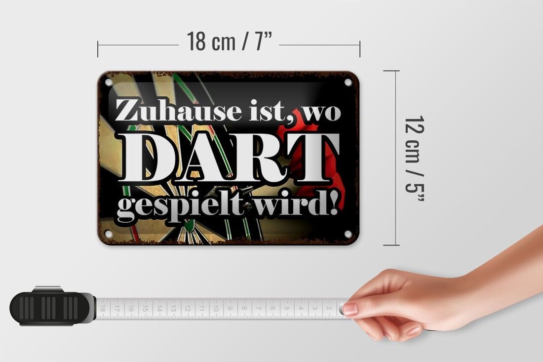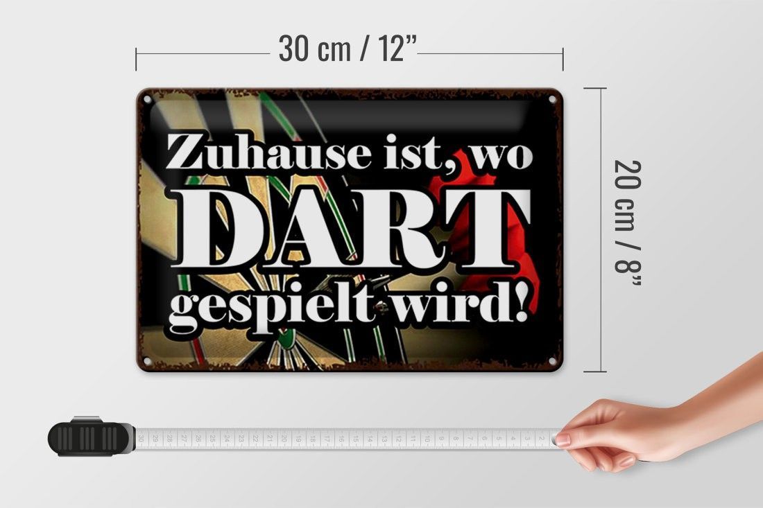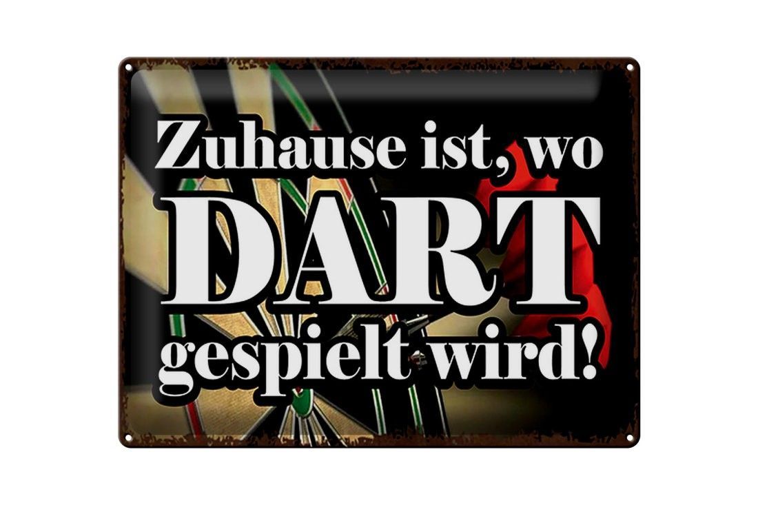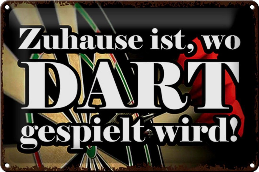 Blechschild Zuhause wo Dart gespielt wird, 3 vers Größen, Spruch Hobby