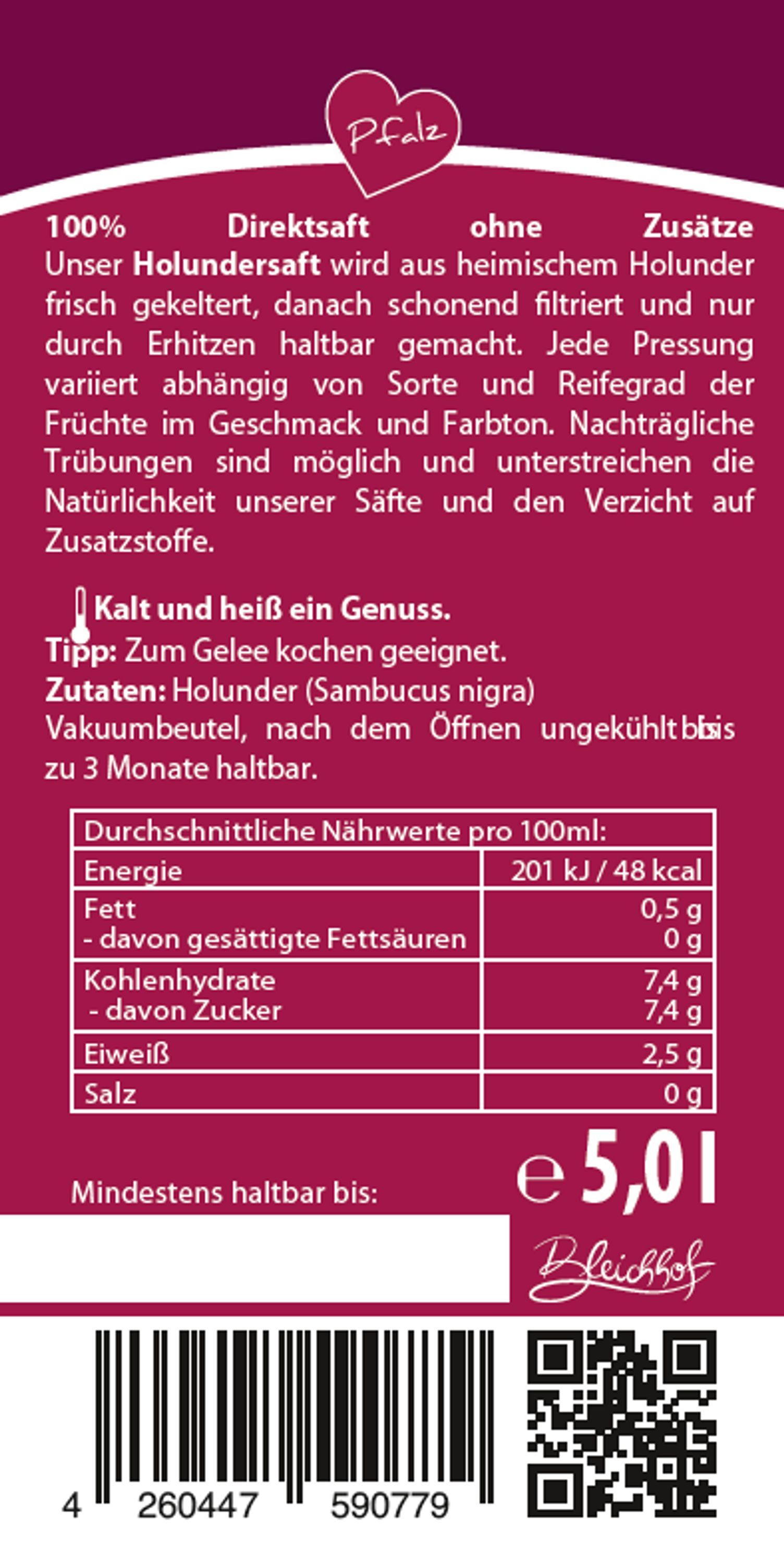 Bleichho Holundersaft - 100% Direktsaft, Bag-in-Box mit Zapfsystem (5l Saftbox)