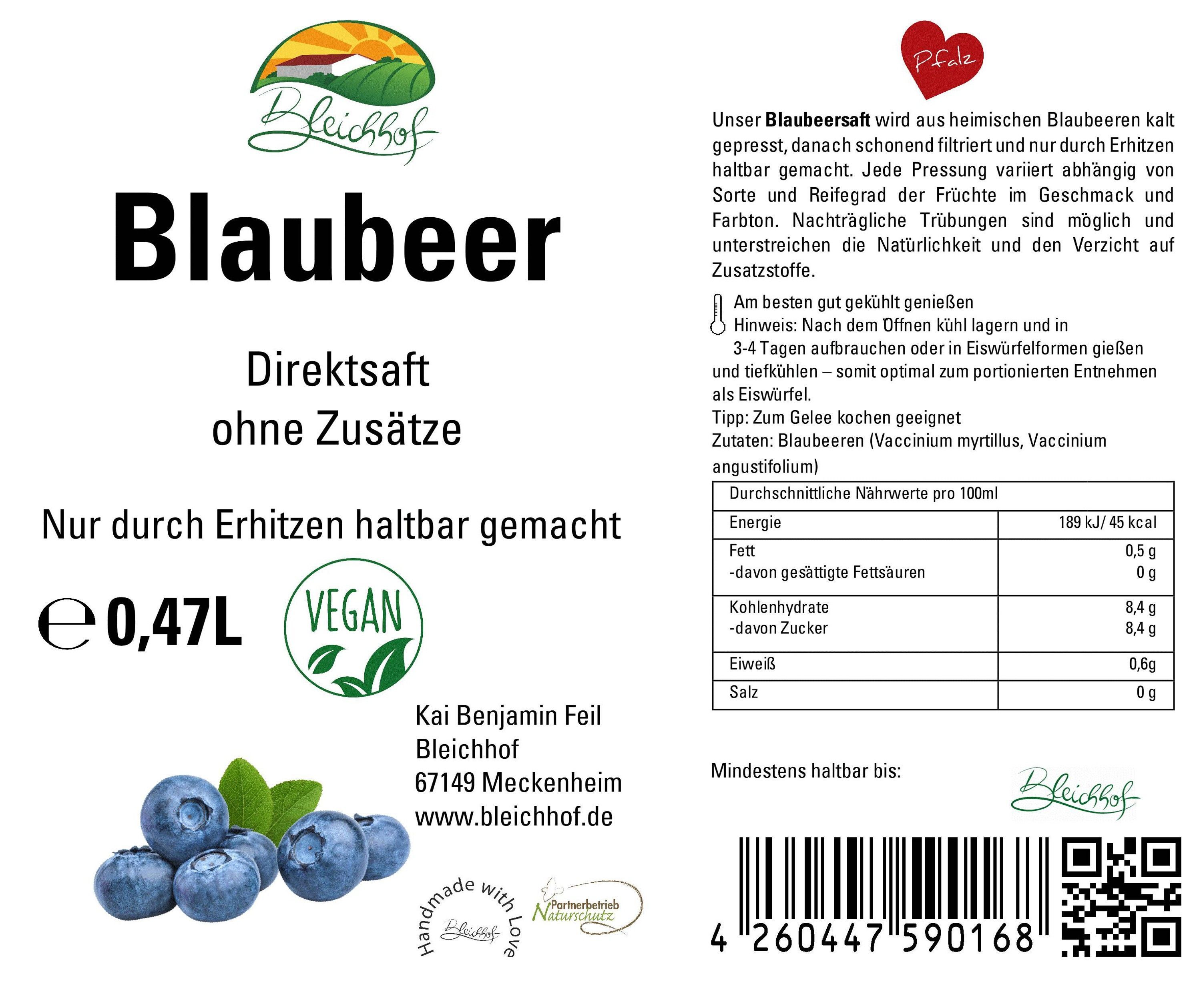Bleichhof Blaubeersaft (8x 0,47l)
