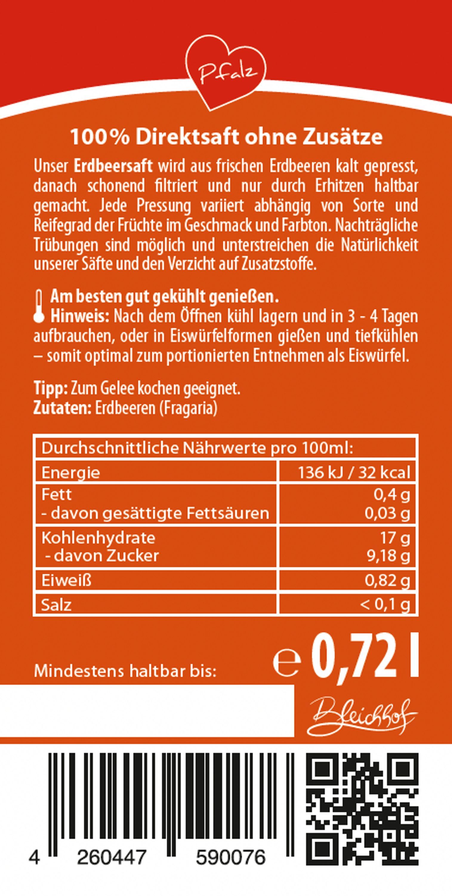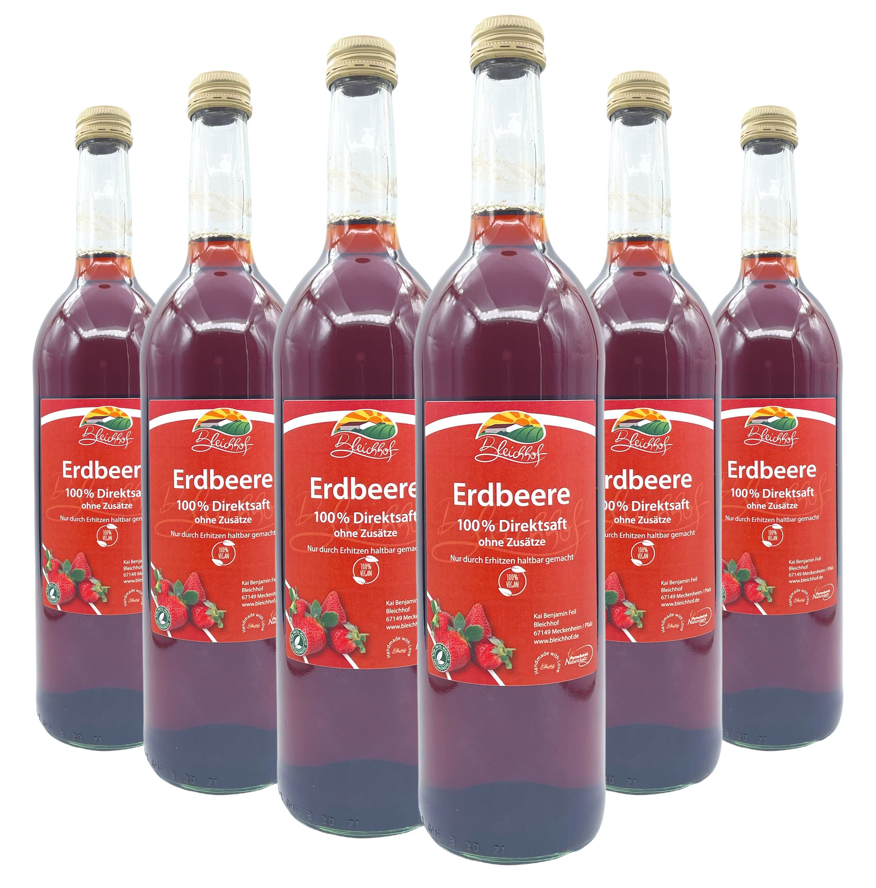 Bleichhof Erdbeersaft - 100% Direktsaft, vegan (6x 0,72l)