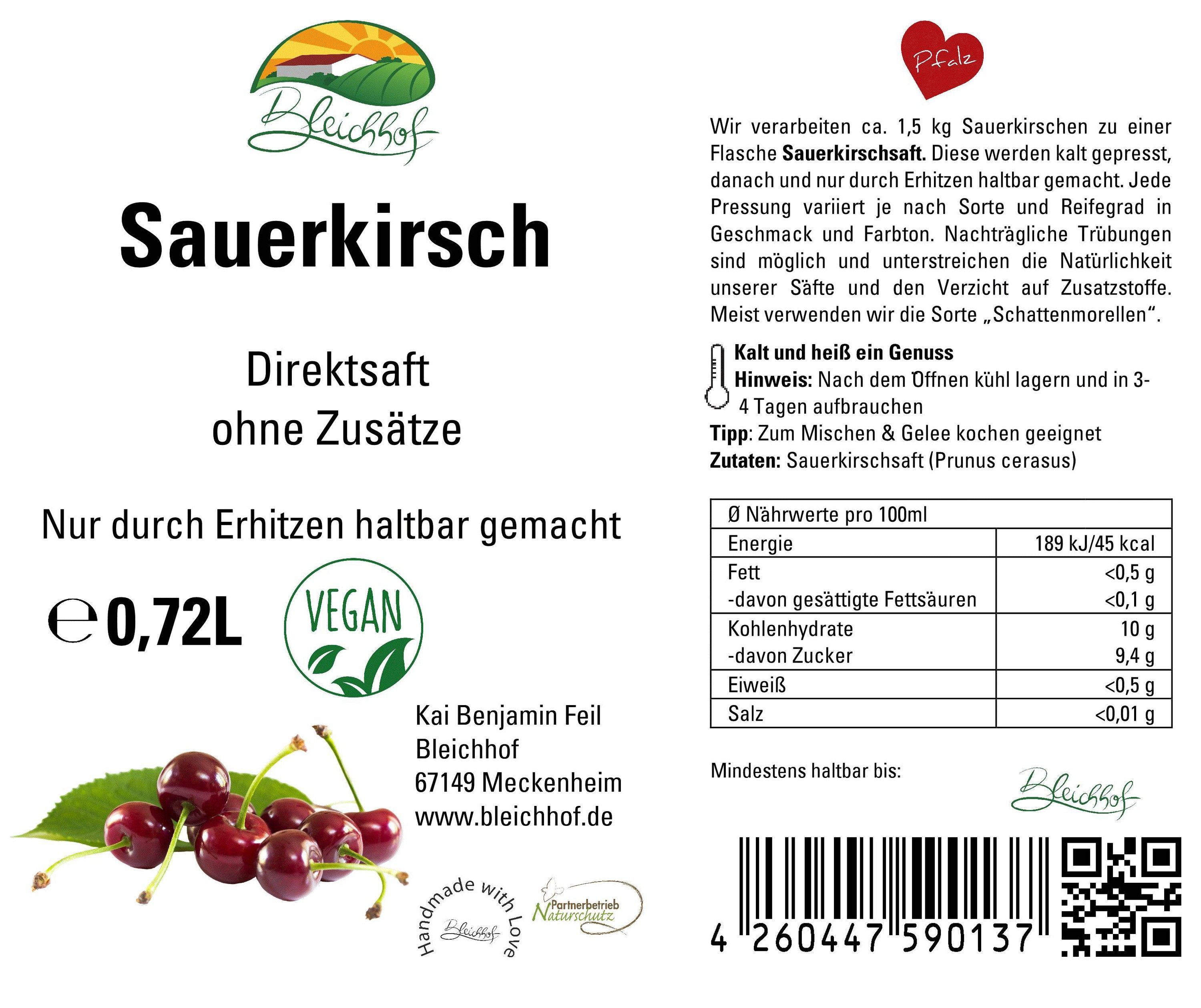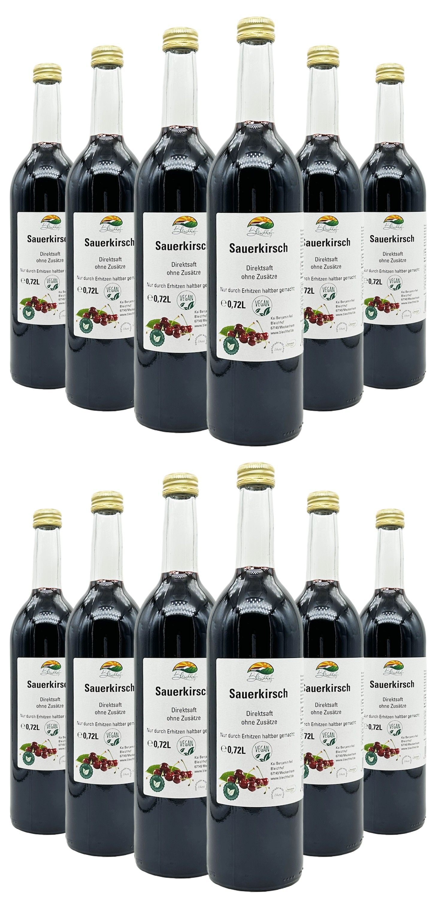 Bleichhof Sauerkirschsaft - 100% Direktsaft OHNE Zuckerzusatz, vegan (12x 0,72l)