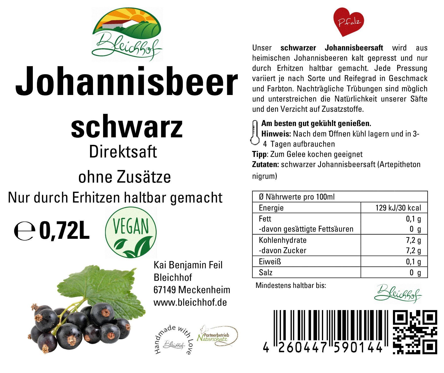 Bleichhof® Schwarzer Johannisbeersaft - Direktsaft, vegan (12x0,72l)
