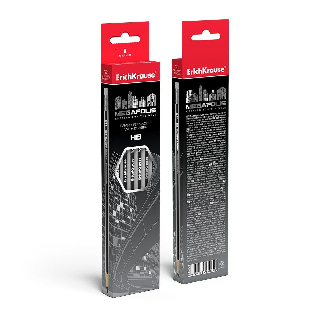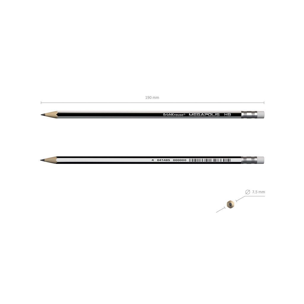 Bleistifte HB mit Radiergummi 12 Stück Schwarz Silber