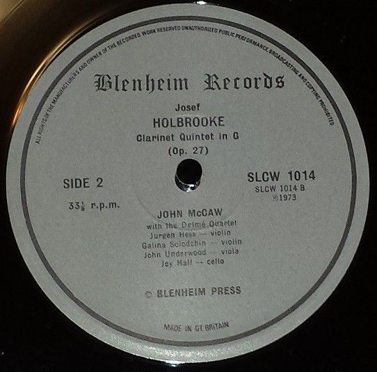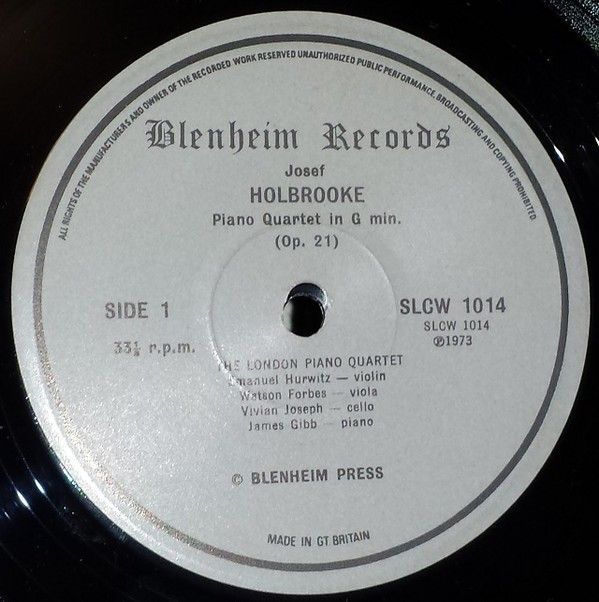 Blenheim Records SLCW 1014 - Joseph Holbrooke - Piano Quartet, Clarinet Quintet