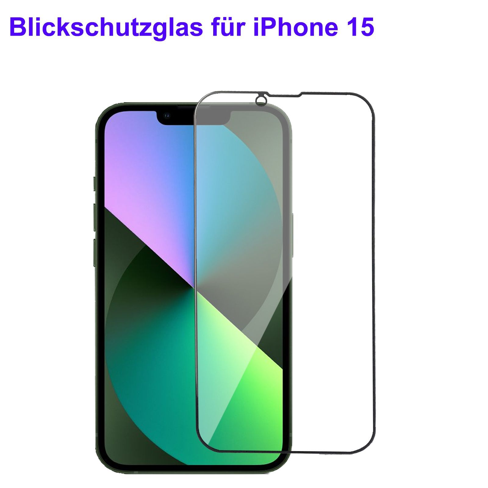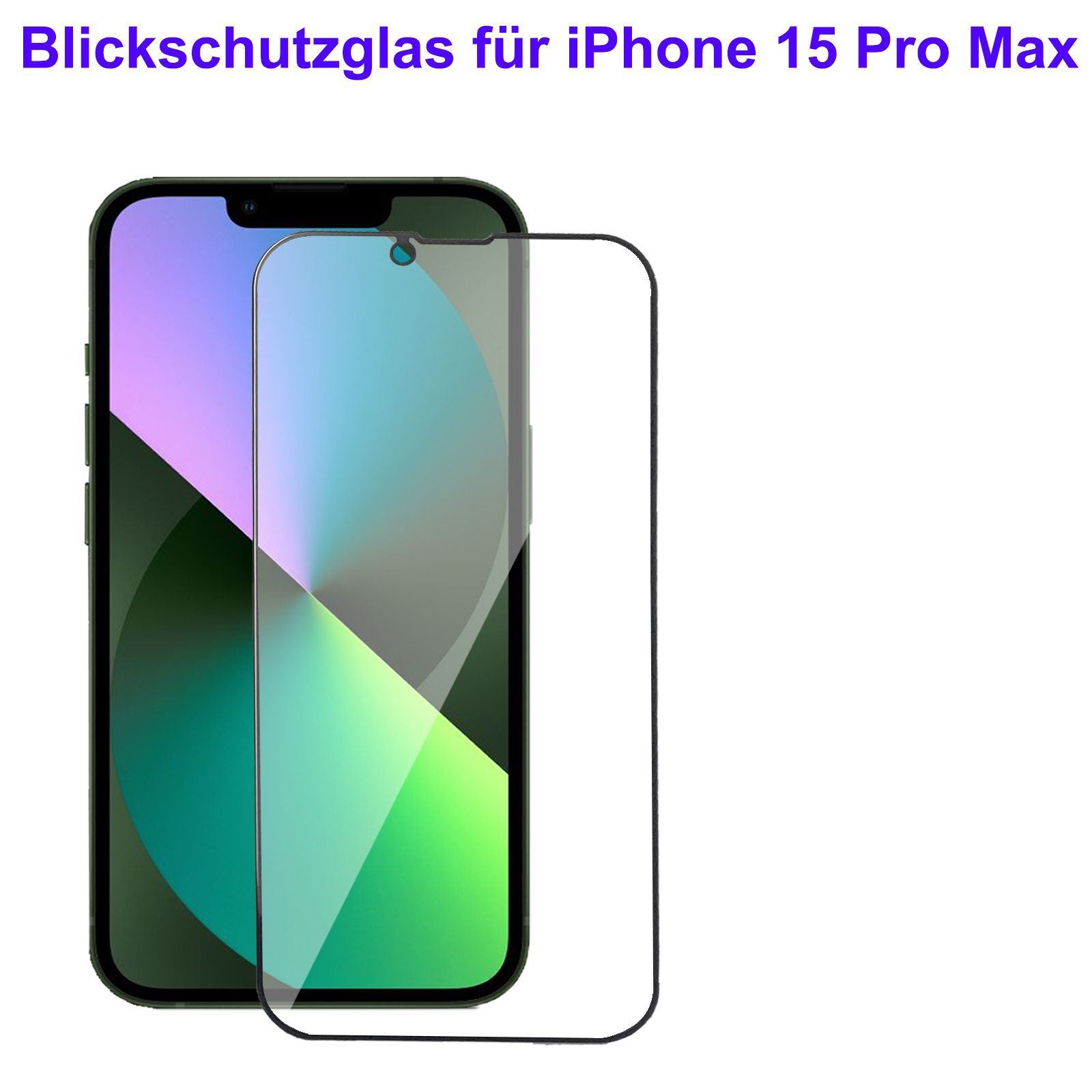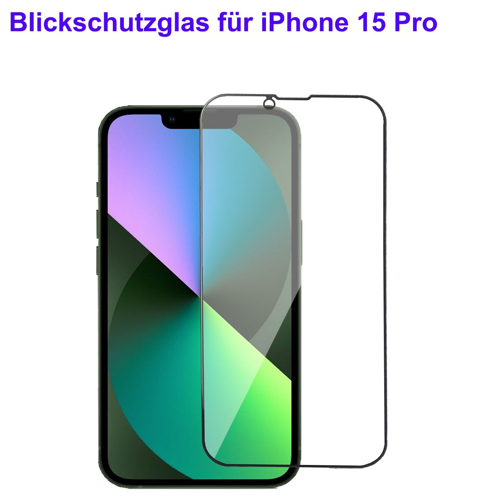 Blickschutz Panzerfolie für iPhone 15, 15 Pro Sichtschutz Folie Privacy Schwarz Mat