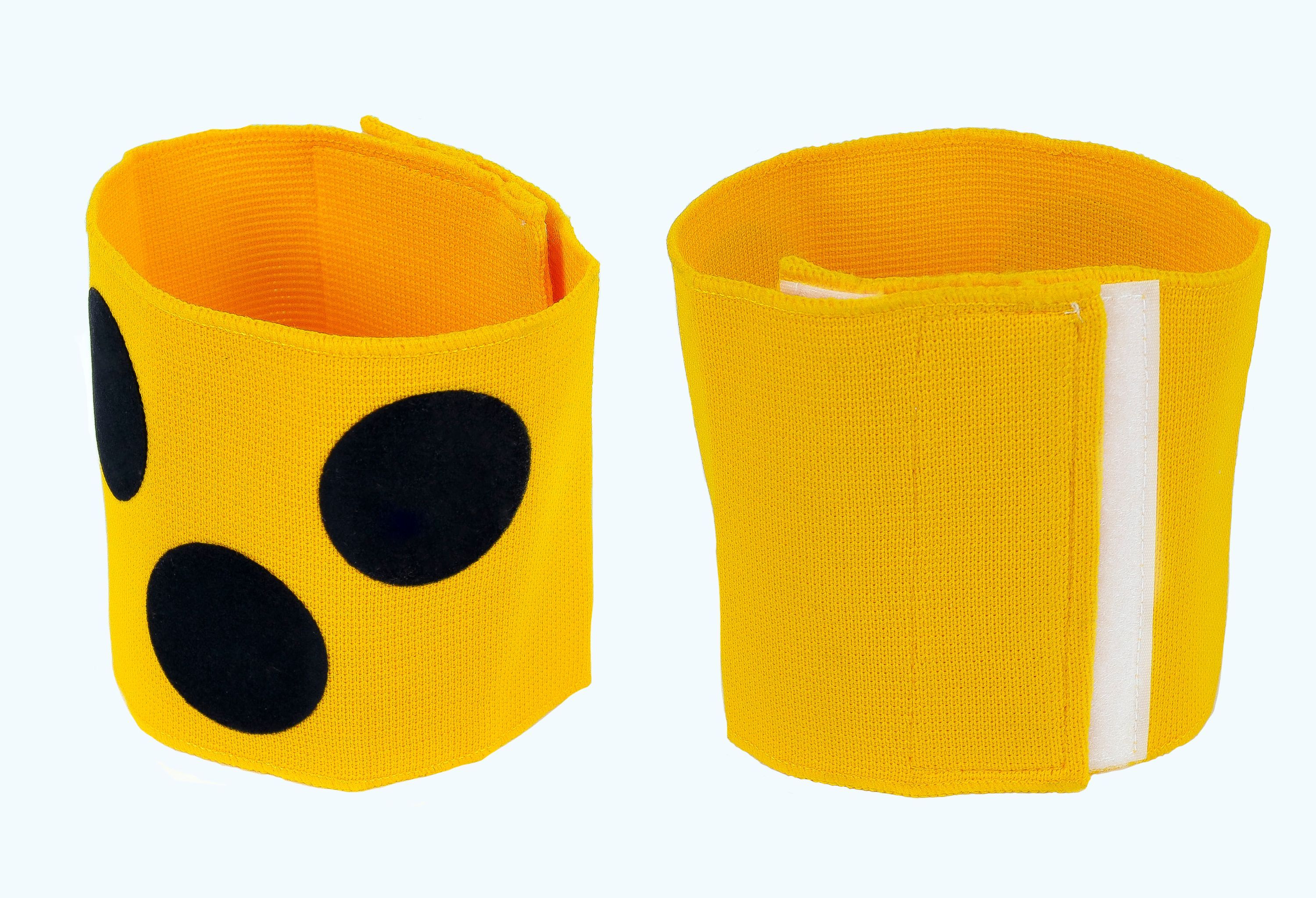 Elastisches Gewebe ( Nylon/Gummi ) Gelb mit 3 schwarzen Punkten Höhe ca. 11cm Handwäsche Umfang von ca. 32cm bis max. 38cm verstellbar