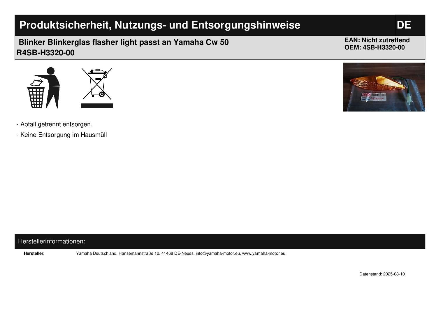 Blinker Blinkerglas flasher light passt an Yamaha Cw 50 R4SB-H3320-00