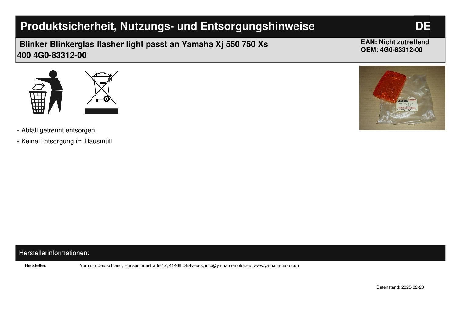Blinker Blinkerglas flasher light passt an Yamaha Xj 550 750 Xs 400 4G0-83312-00
