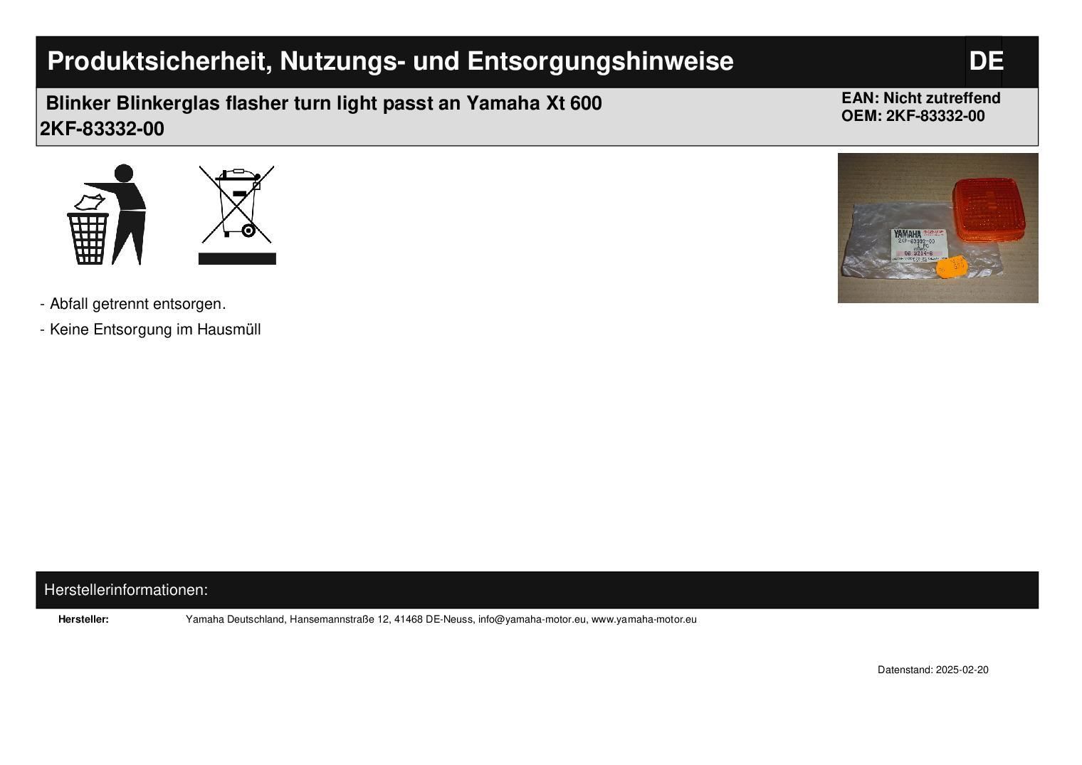 Blinker Blinkerglas flasher turn light passt an Yamaha Xt 600 2KF-83332-00