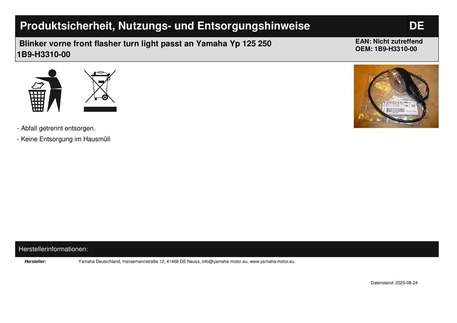 Blinker vorne front flasher turn light passt an Yamaha Yp 125 250 1B9-H3310-00