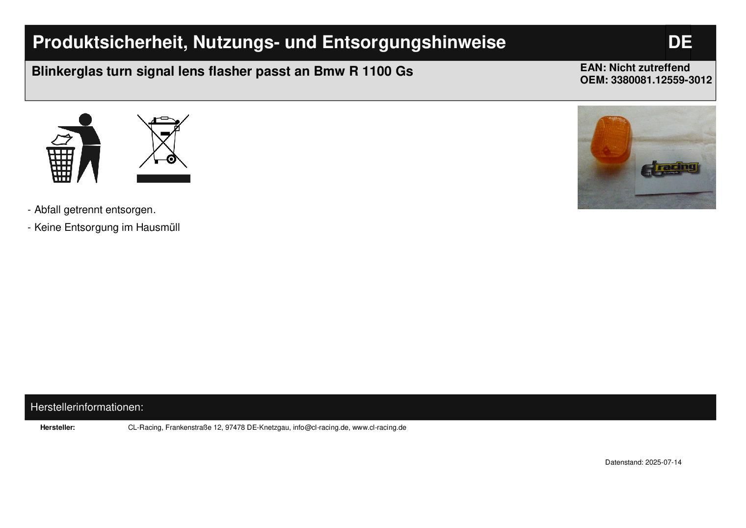 Blinkerglas turn signal lens flasher passt an Bmw R 1100 Gs
