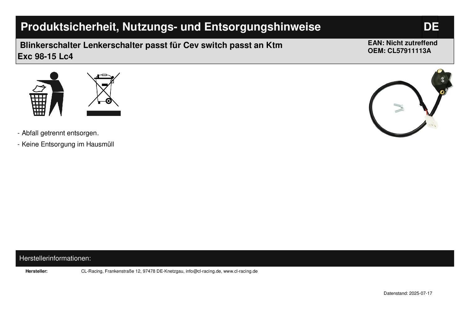 Blinkerschalter Lenkerschalter passt für Cev switch passt an Ktm Exc 98-15 Lc4 In dieser Auktion gibt es folgenden Artikel zu kaufen: Blinkerschalter (siehe Foto) Modell: passend für Ktm Exc 125 200 250 300 350 380 400 450 500 520 525 530 Bj.: 1998 - 2015 Exe 125 200 250 300 350 380 400 450 500 520