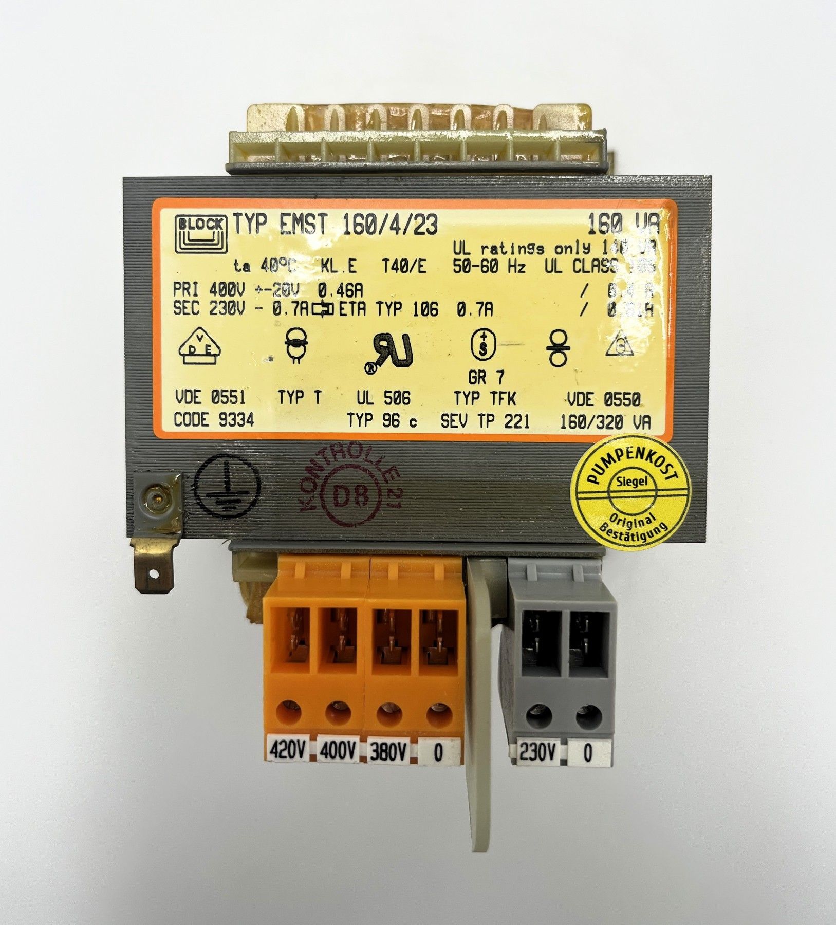 Block EMST 160/4/23 Trafo pri. 400V sek 230V 160VA T10/182