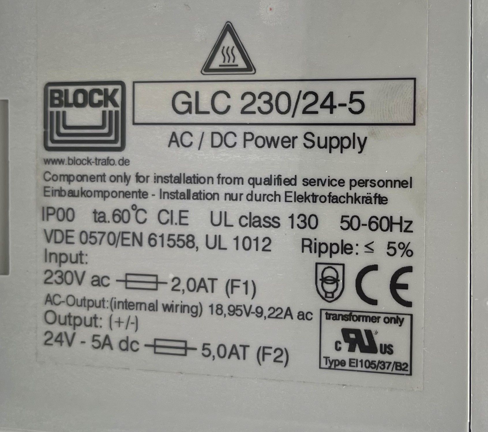 Block GLC 230/24-5 Transformator 230 V auf 24 V DC 5 A T9/274