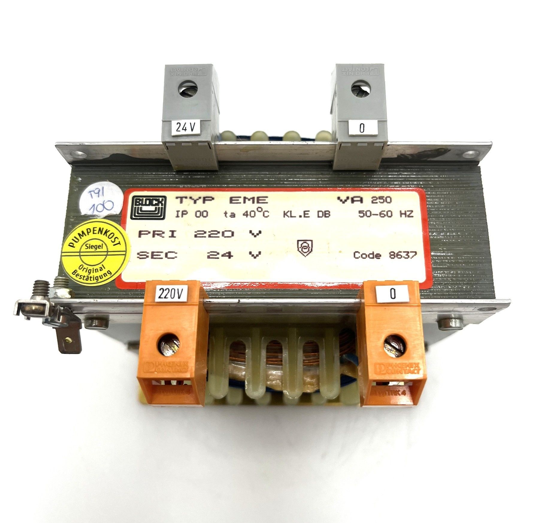 Block Typ EME Transformator Trafo 220 V - 24 V 250 VA T9/100