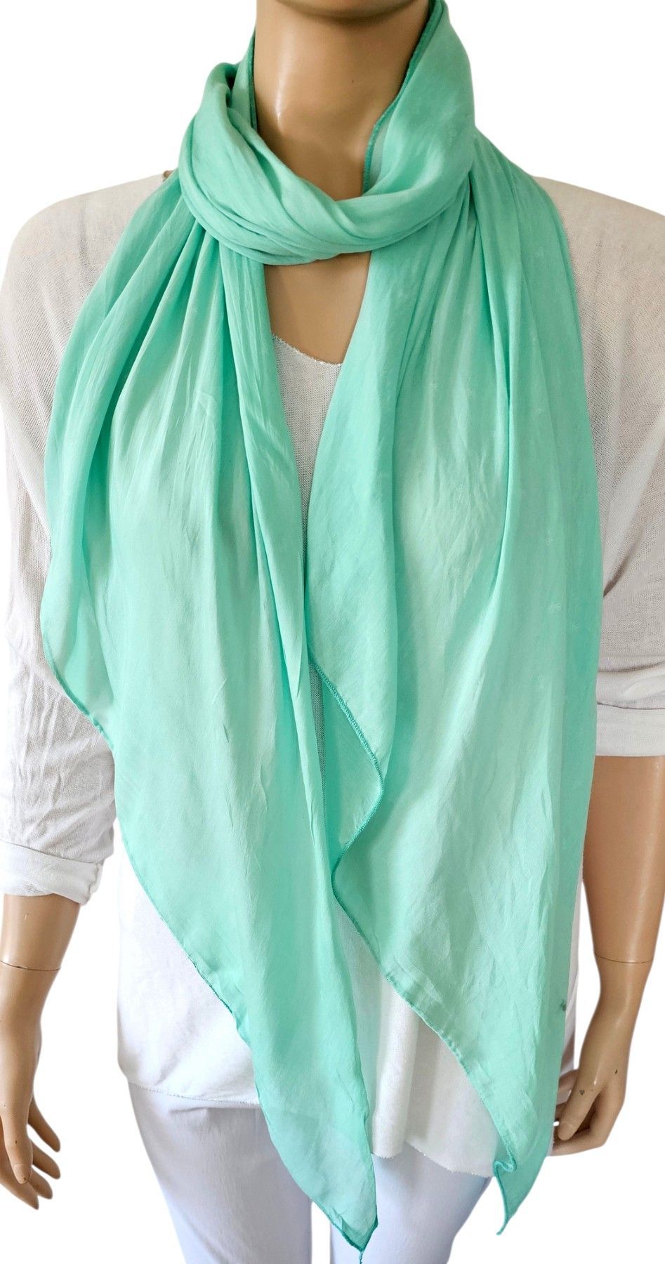 Blogger Italy Blogger Schal Tuch Halstuch Scarf lang Seide/Baumwolle Farbe: Mint