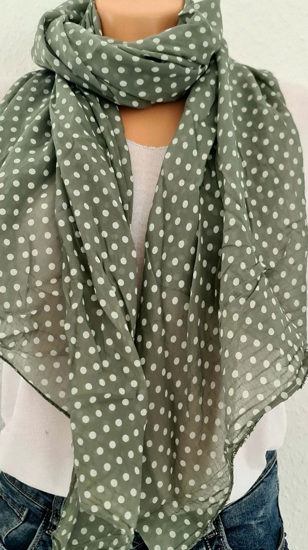 Blogger Italy Schal Tuch Halstuch Baumwolle/Seide asymetrisch Punkteprint Khaki