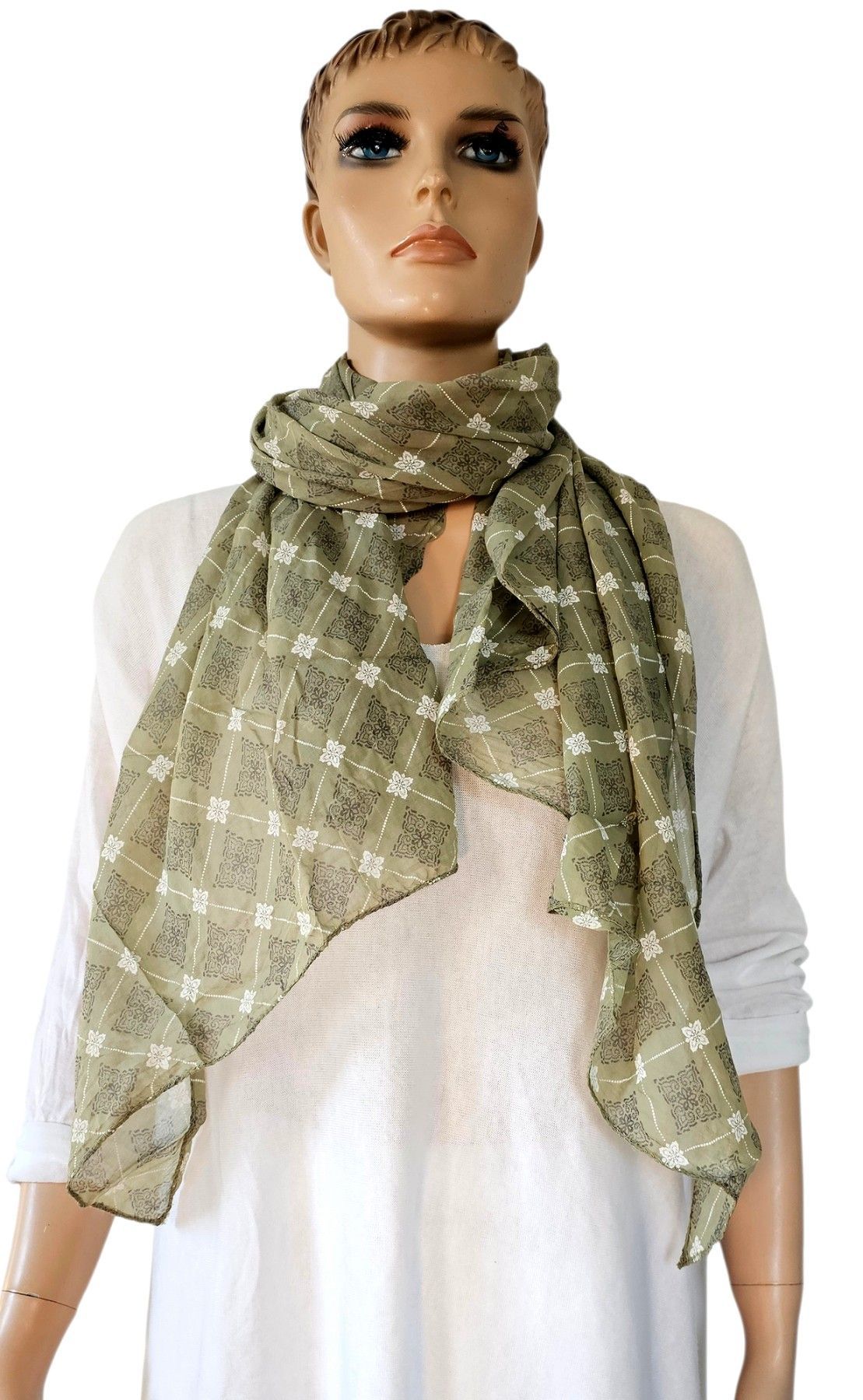 Blogger Italy Schal Tuch Halstuch Seide/Baumwolle asymetrisch Blüten Grün/Weiß