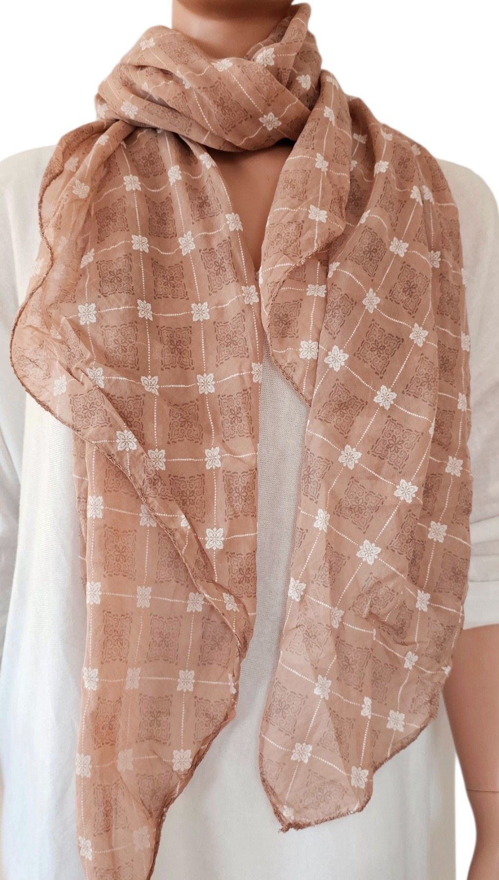 Blogger Italy Schal Tuch Halstuch Seide/Baumwolle asymetrisch Blüten Taupe/Weiß