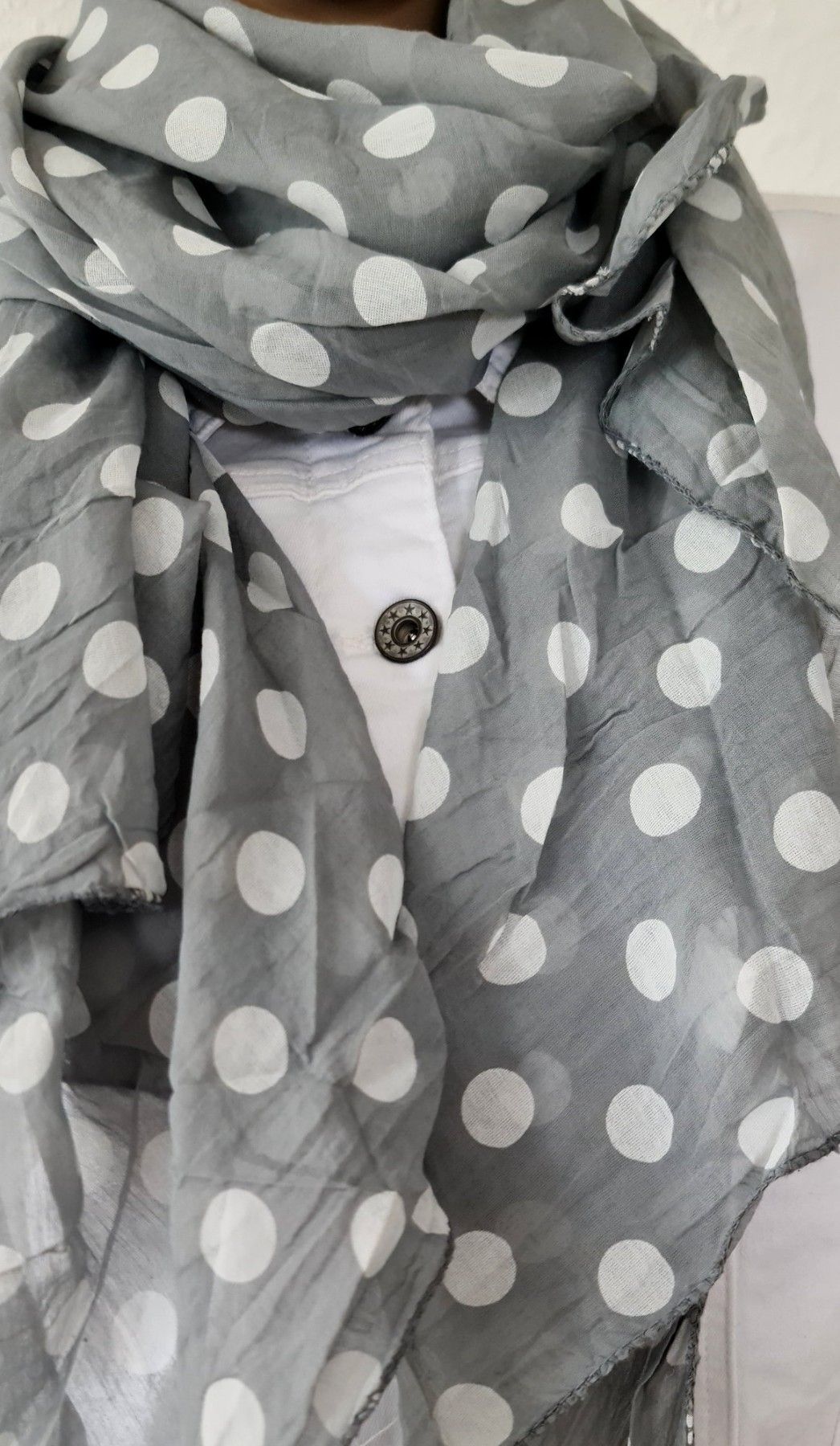 Blogger Italy Schal Tuch Seide/ Baumwolle asymetrisch große Punkte Grau