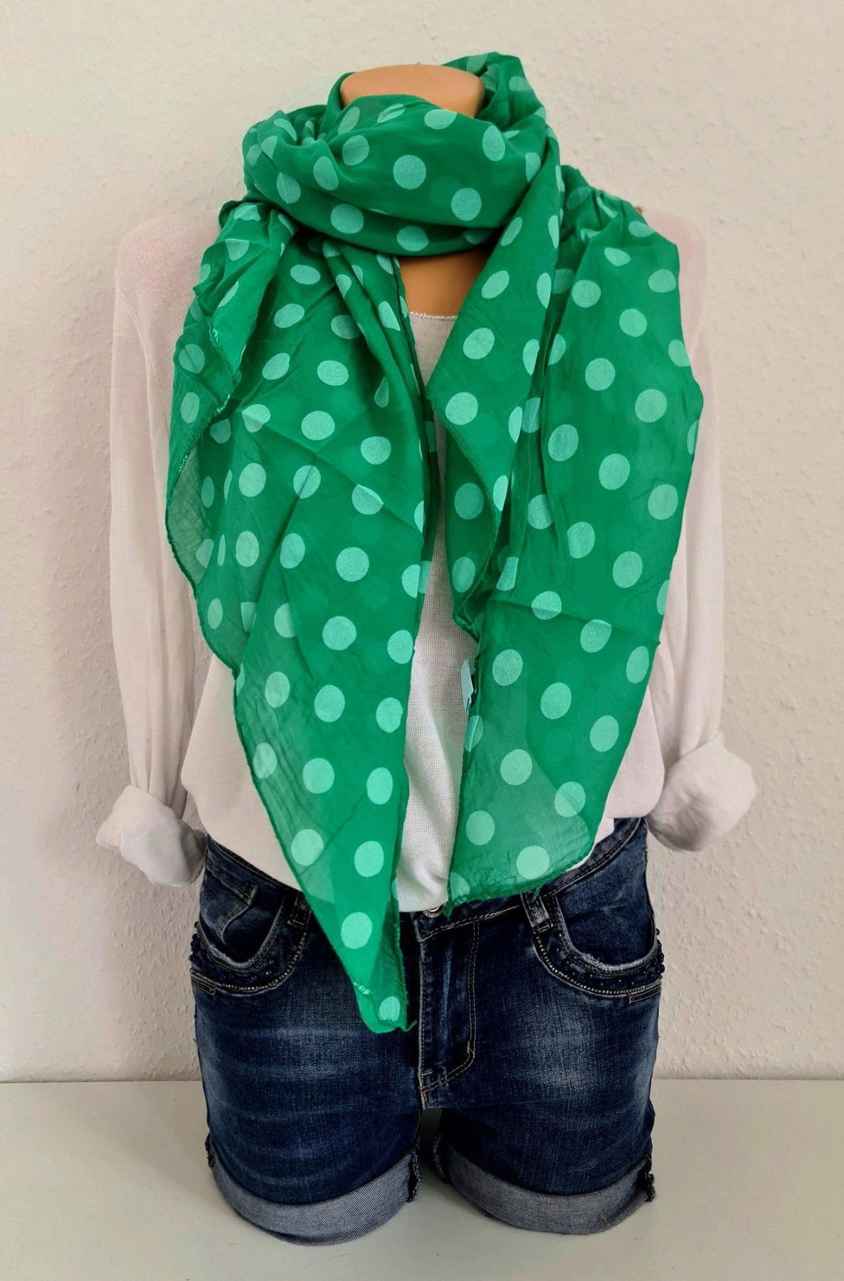 Blogger Italy Schal Tuch Seide/ Baumwolle asymetrisch große Punkte Grün