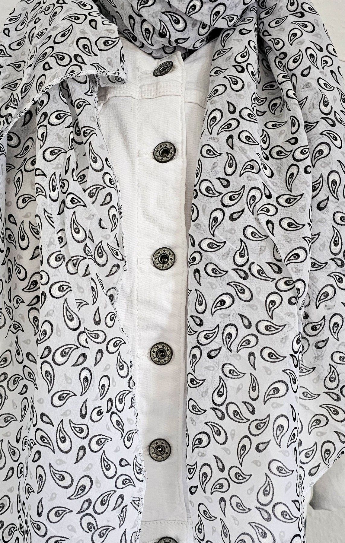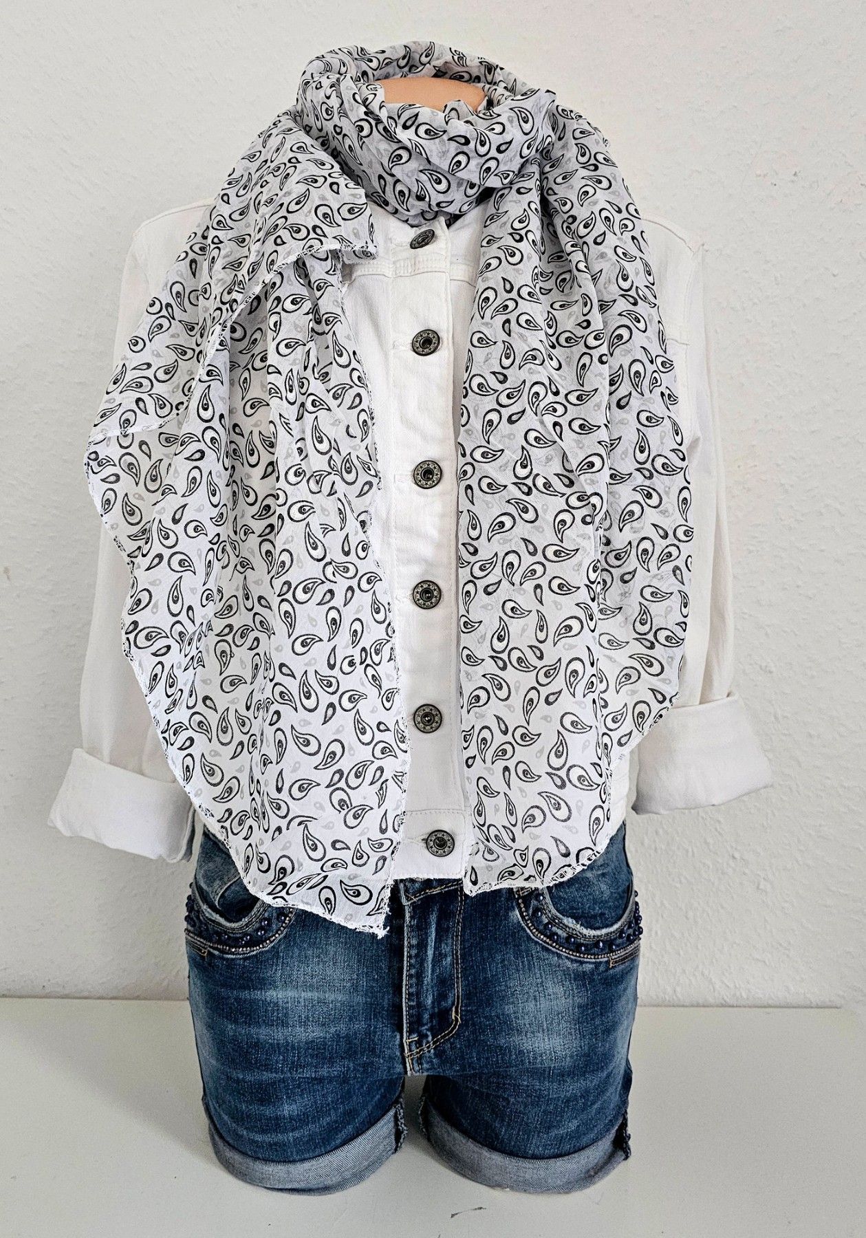 Blogger Italy Schal Tuch Seide/Baumwolle asymetrisch kleiner Paisleyprint Weiß