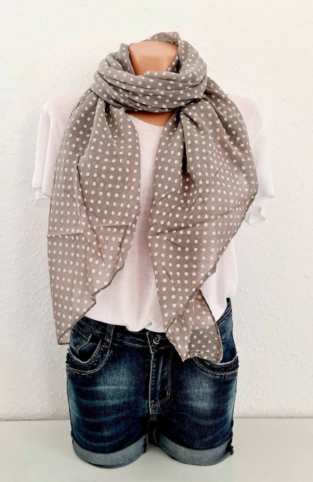 Blogger Italy Schal Tuch Seide/Baumwolle asymetrisch mittelgroße Punkte Taupe