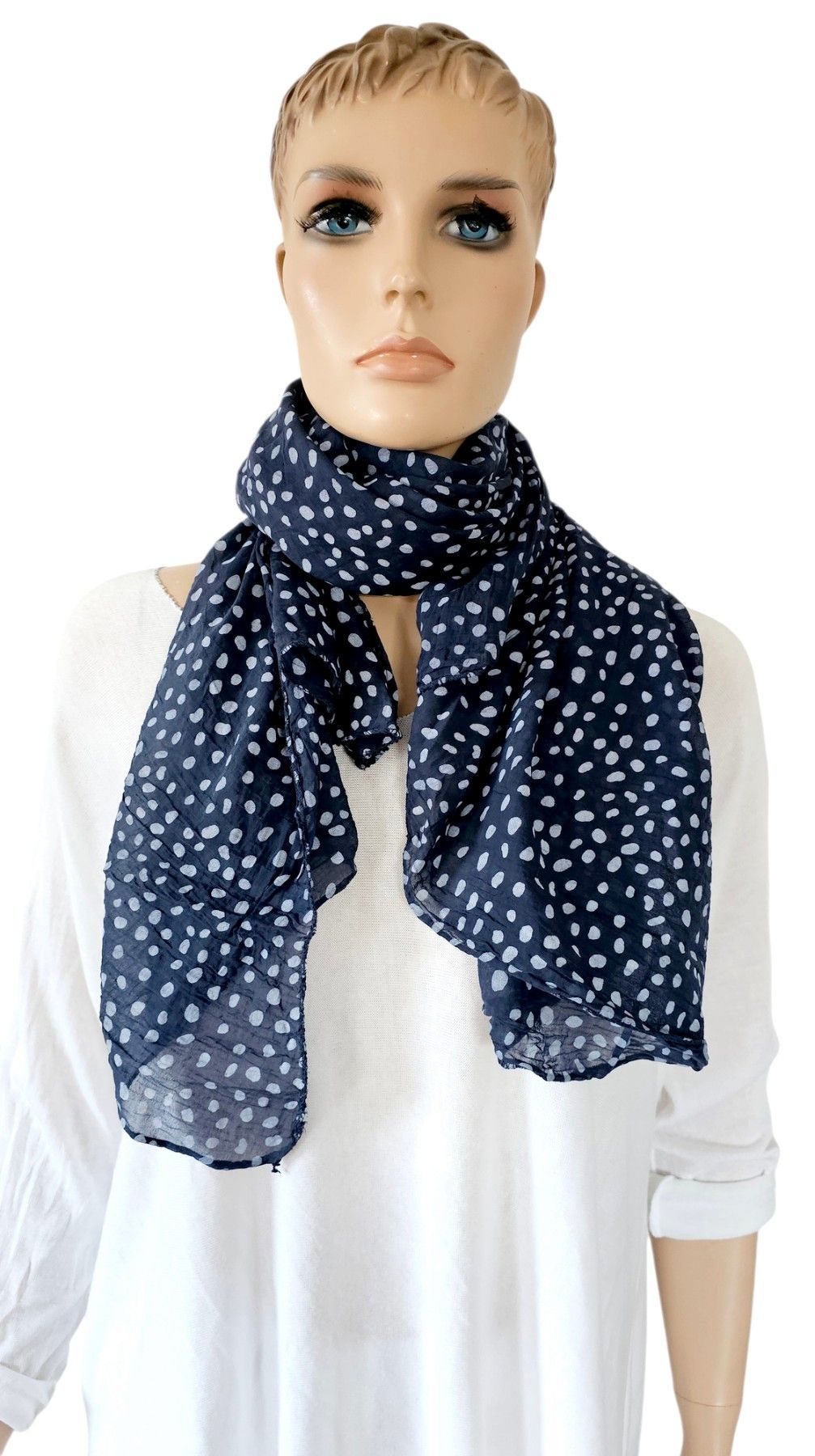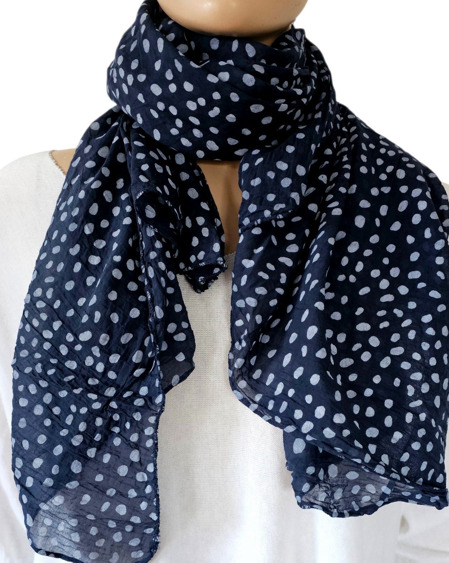 Blogger Italy Schal Tuch Seide/ Baumwolle asymetrisch Punkteprint Dunkelblau