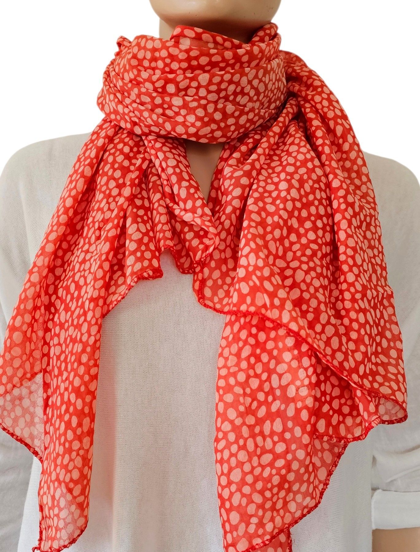 Blogger Italy Schal Tuch Seide/ Baumwolle asymetrisch Punkteprint helles Rot
