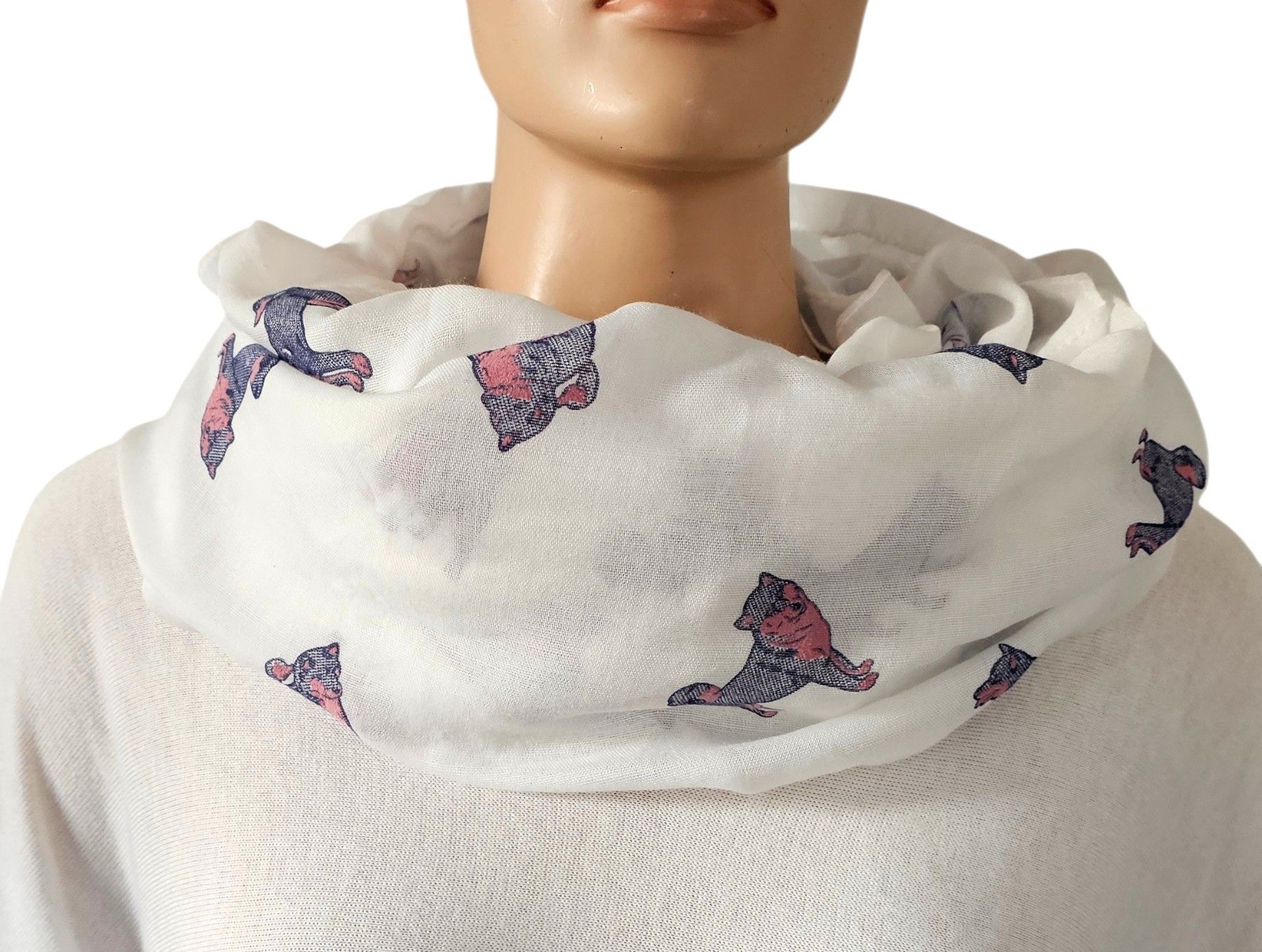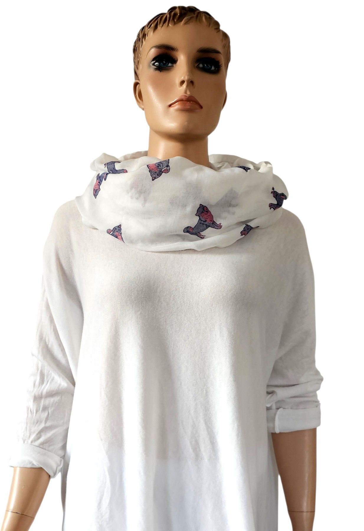 Blogger Loop Schal Halstuch Schlauchschal Baumw. Viskose Hundeprint Weiß/Grau