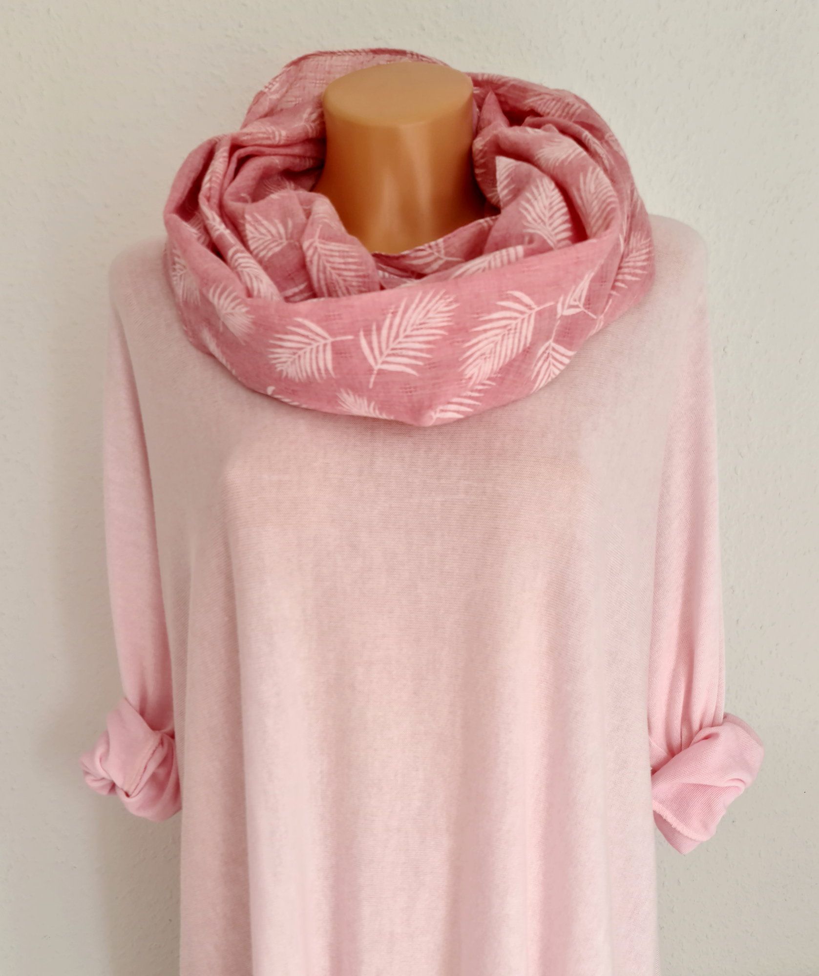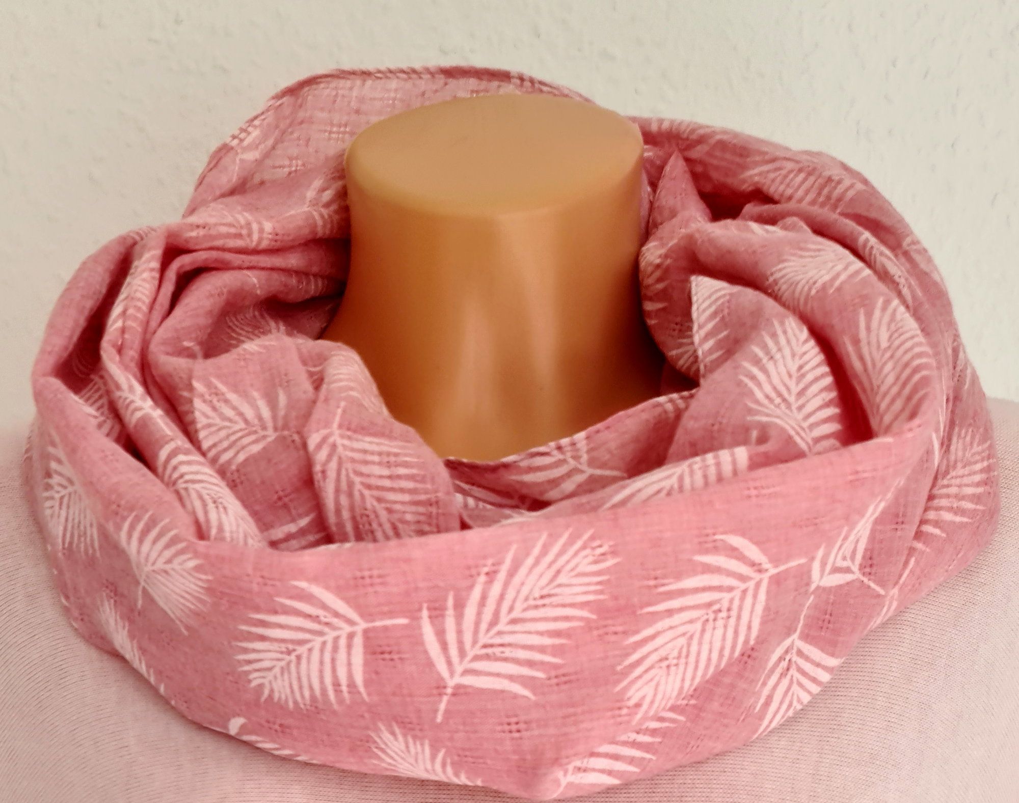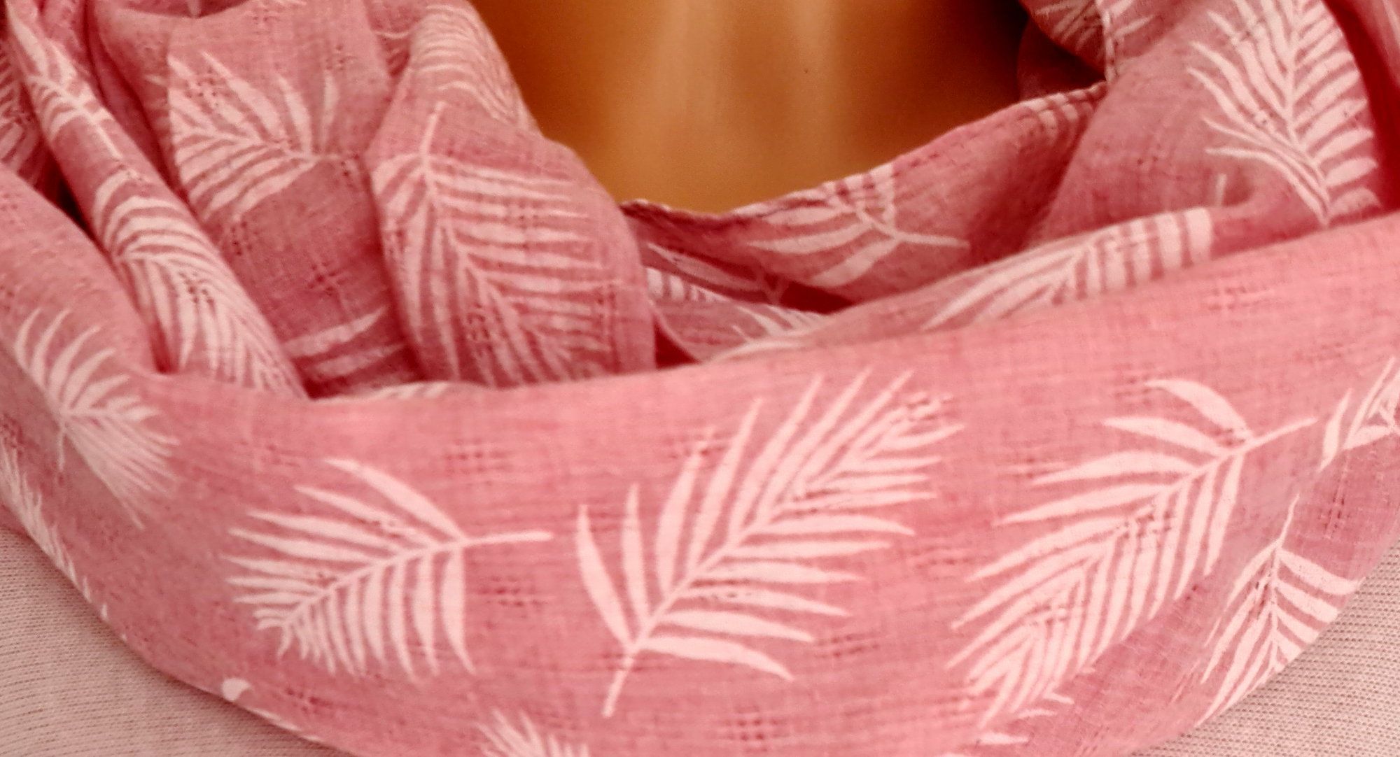 Blogger Loop Schal Halstuch Schlauchschal Baumwolle Viskose Blätter Rosa/ Weiß