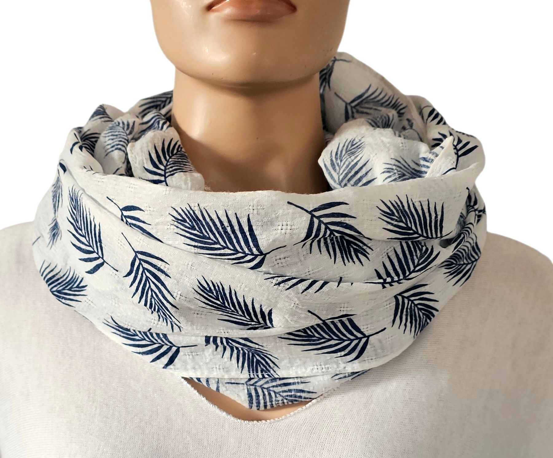 Blogger Loop Schal Halstuch Schlauchschal Baumwolle Viskose Blätter Weiß/Blau