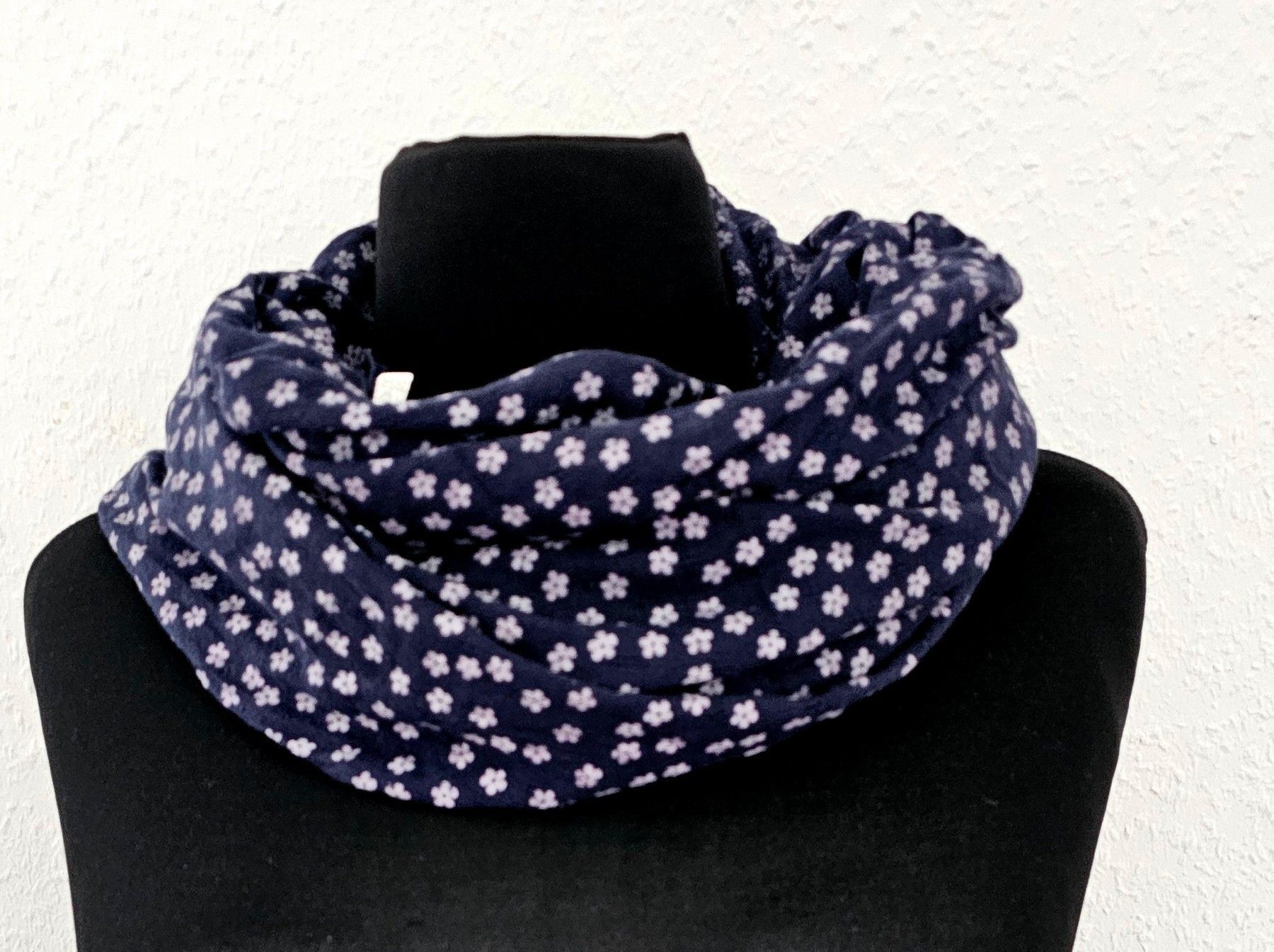 Blogger Loop Schal Halstuch Schlauchschal Baumwolle Viskose Blütenprint Dunkelblau