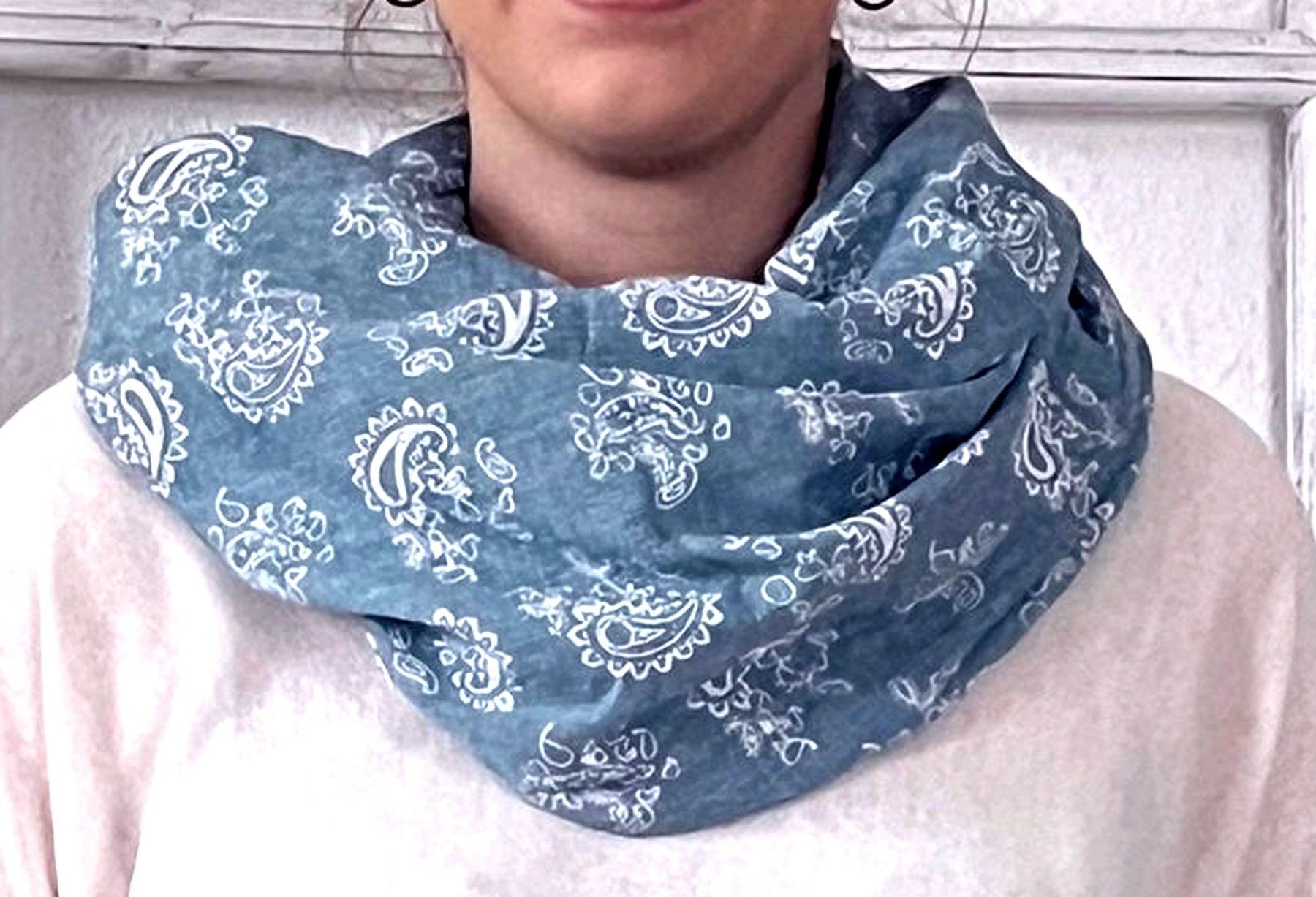 Blogger Loop Schal Halstuch Schlauchschal Baumwolle Viskose Paisley Jeansblau/Weiß