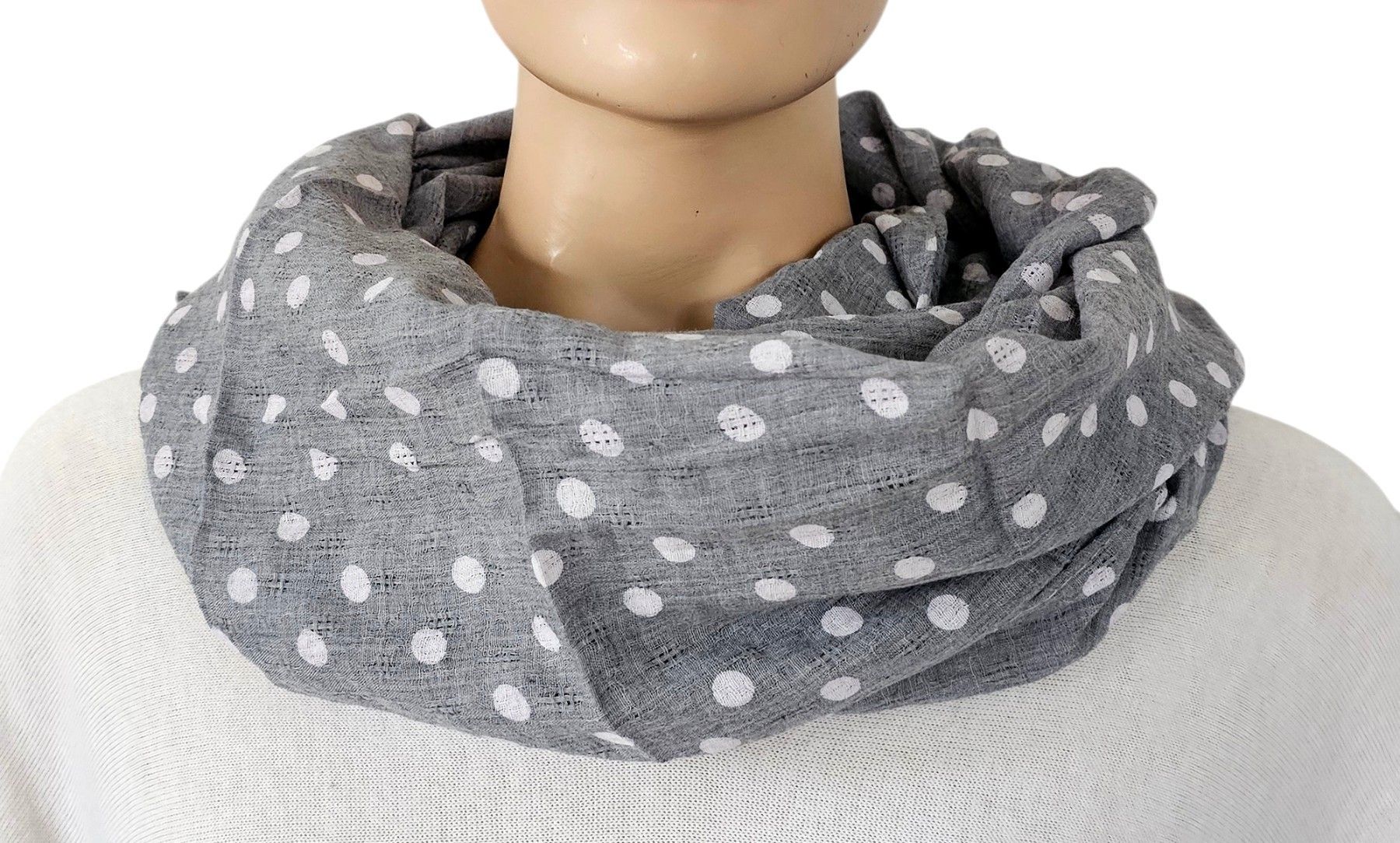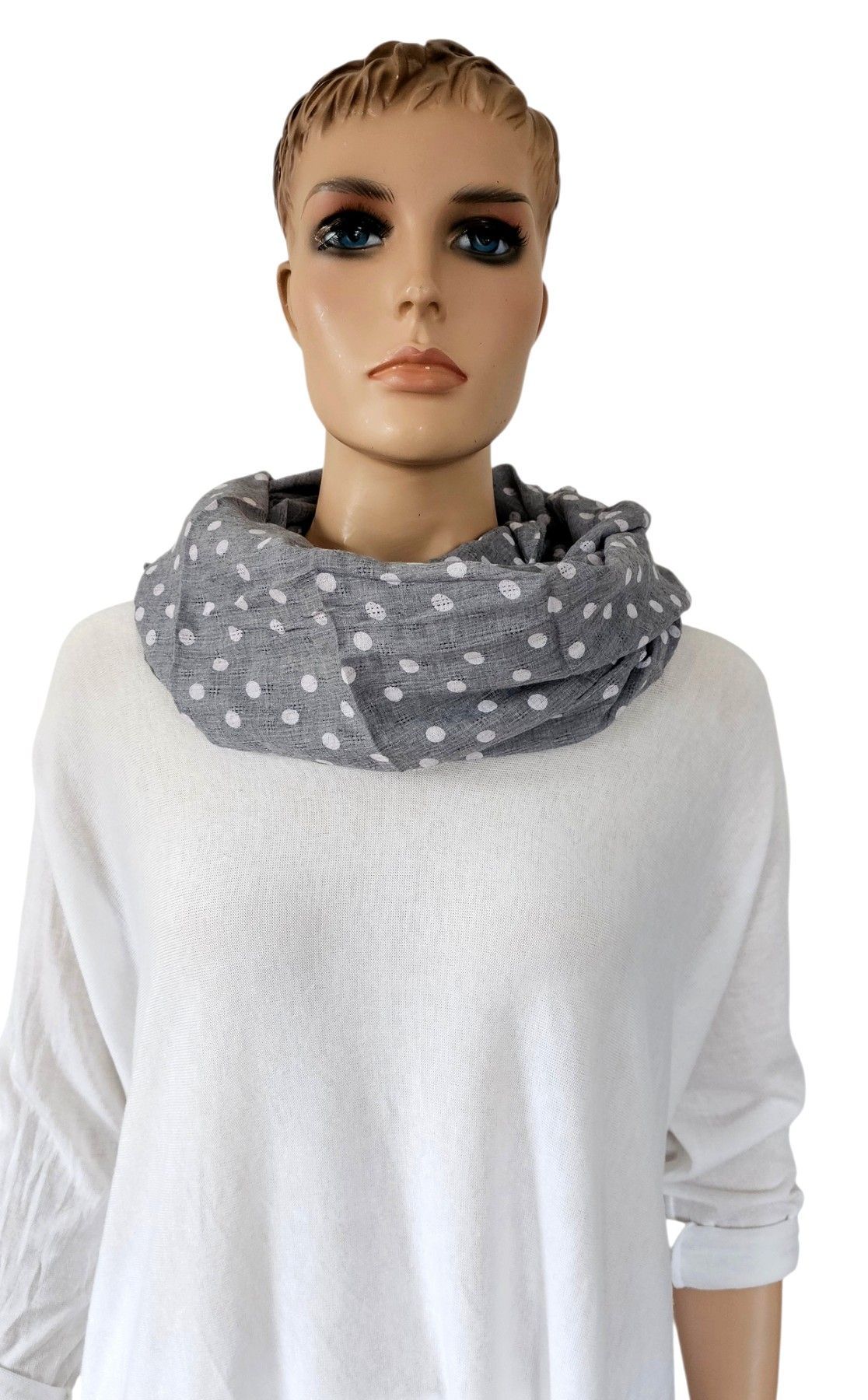 Blogger Loop Schal Halstuch Schlauchschal Baumwolle Viskose weiße Punkte Grau