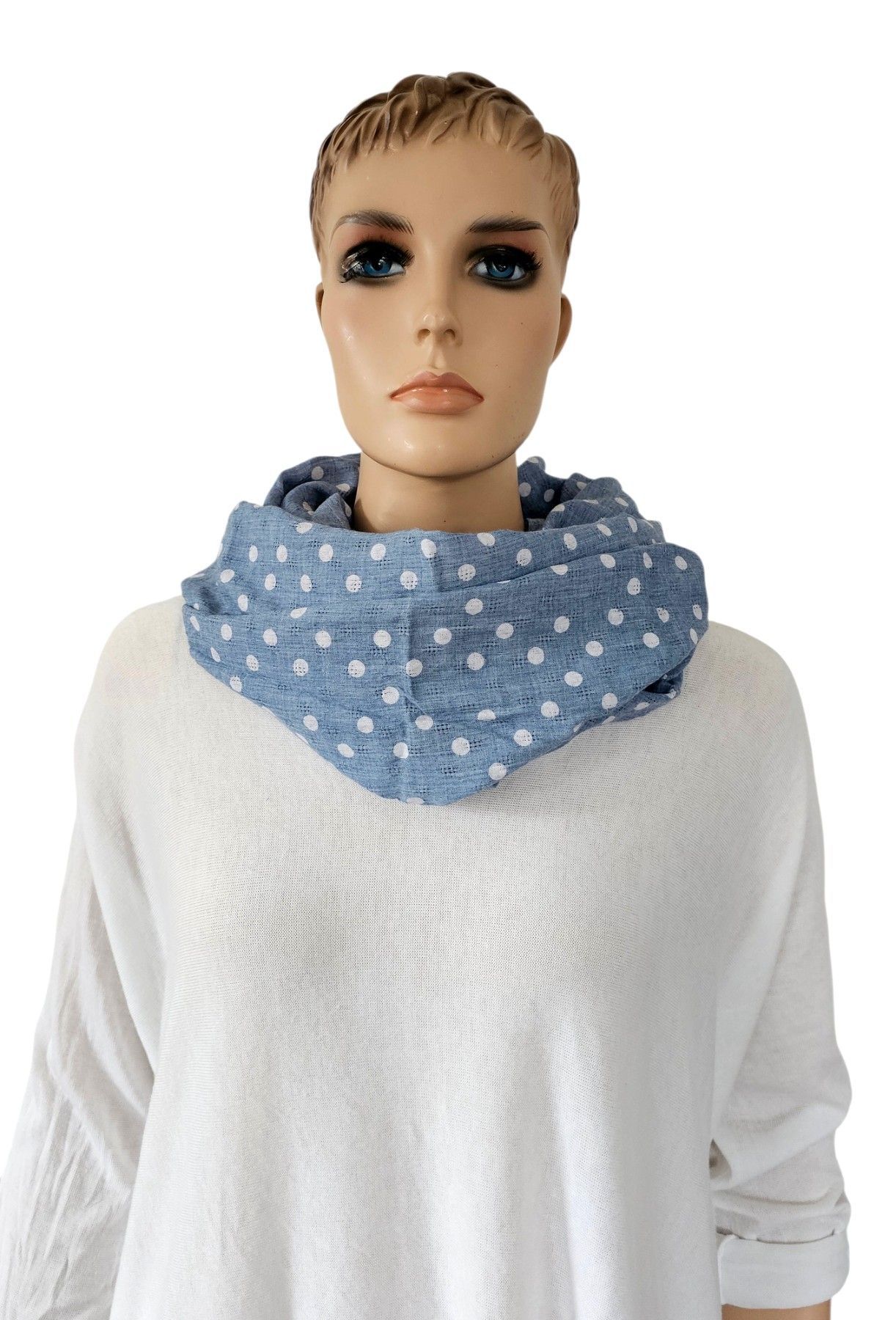 Blogger Loop Schal Halstuch Schlauchschal Baumwolle Viskose weiße Punkte Jeansblau