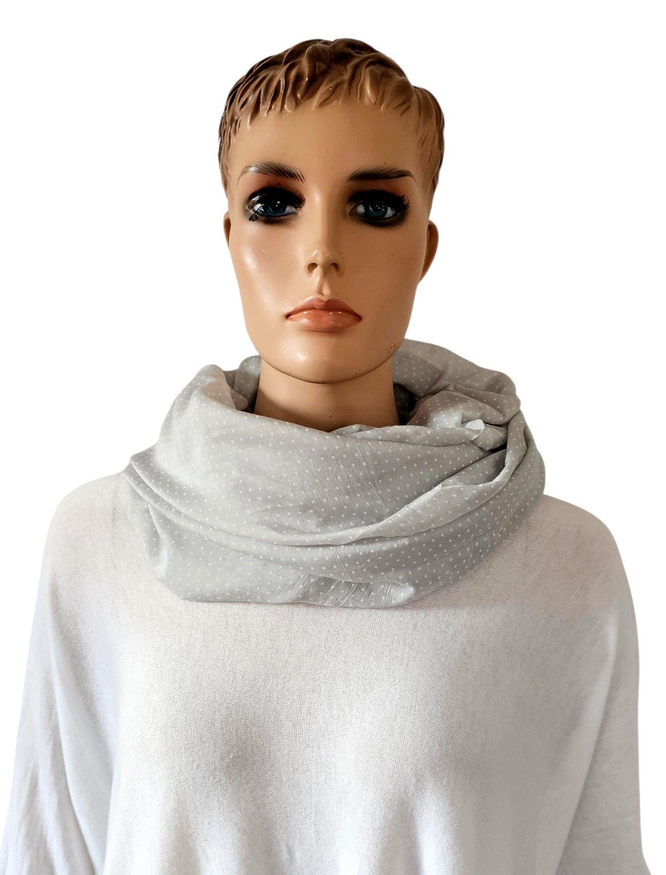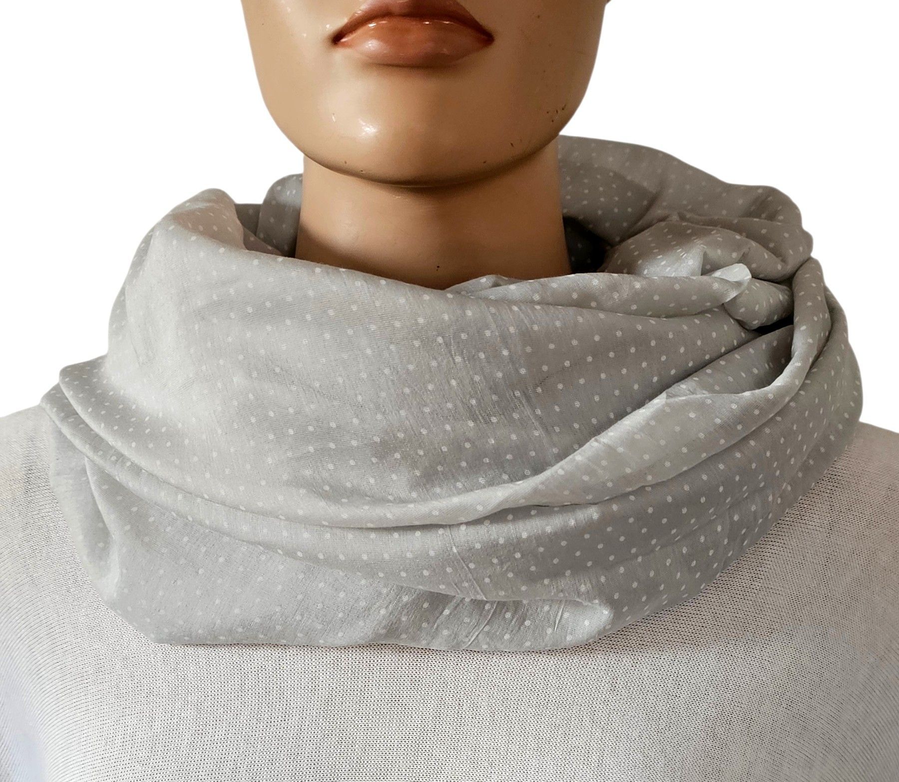 Blogger Loop Schal Tuch Halstuch Schlauchschal mit Seide Pünktchen Hellgrau/Weiß