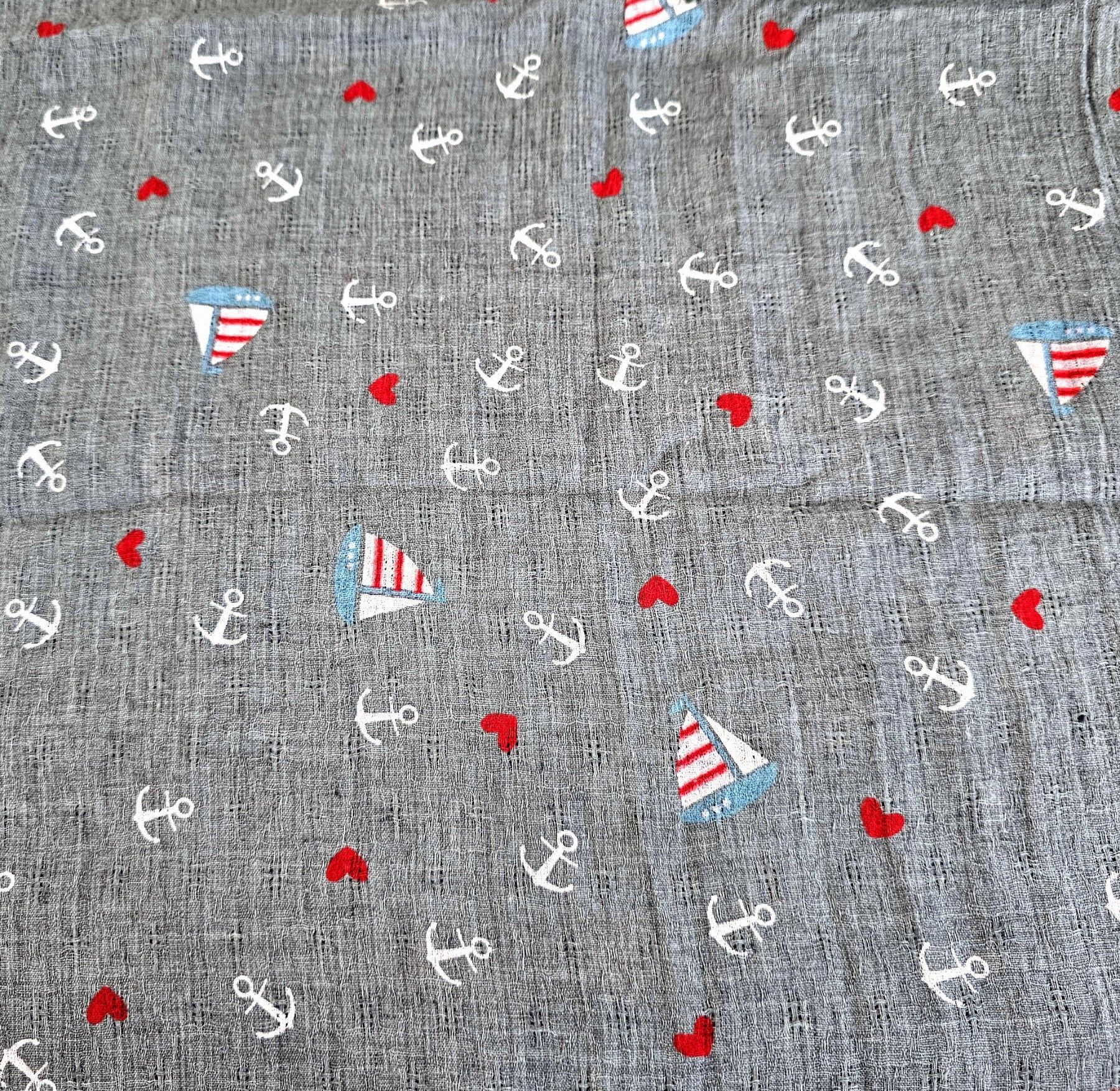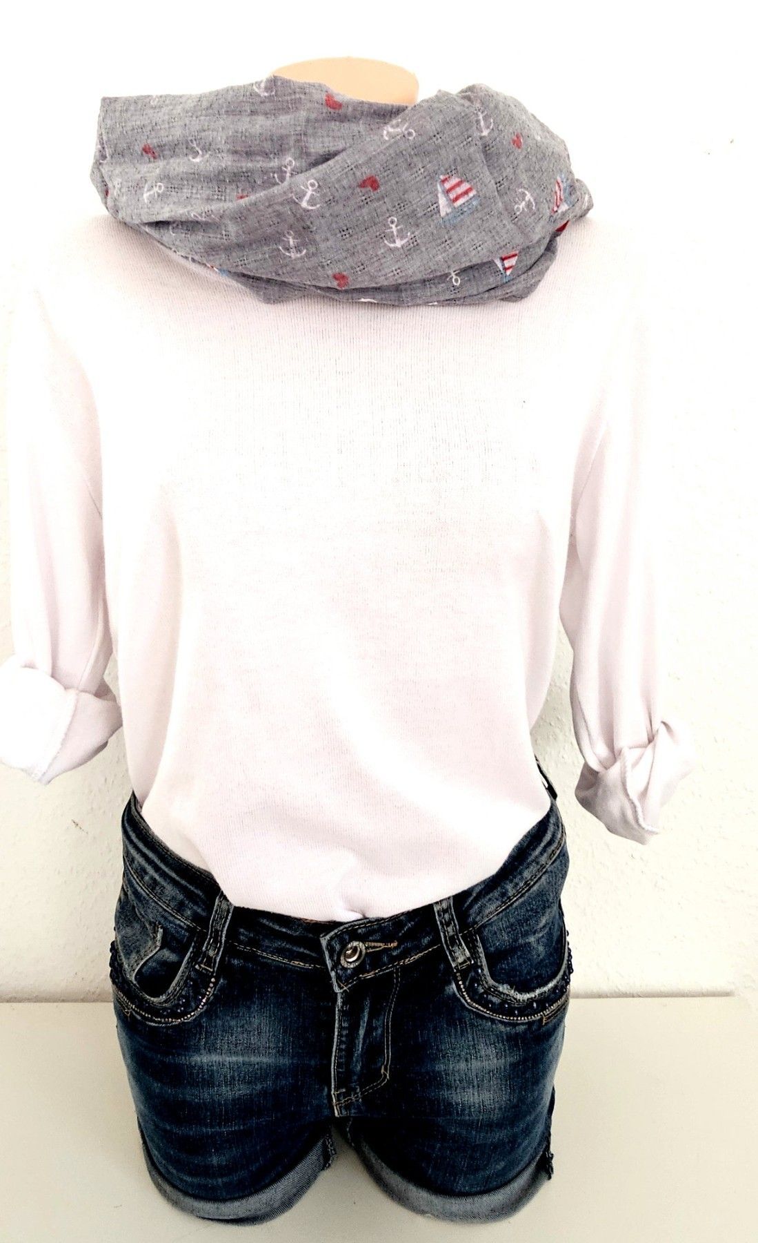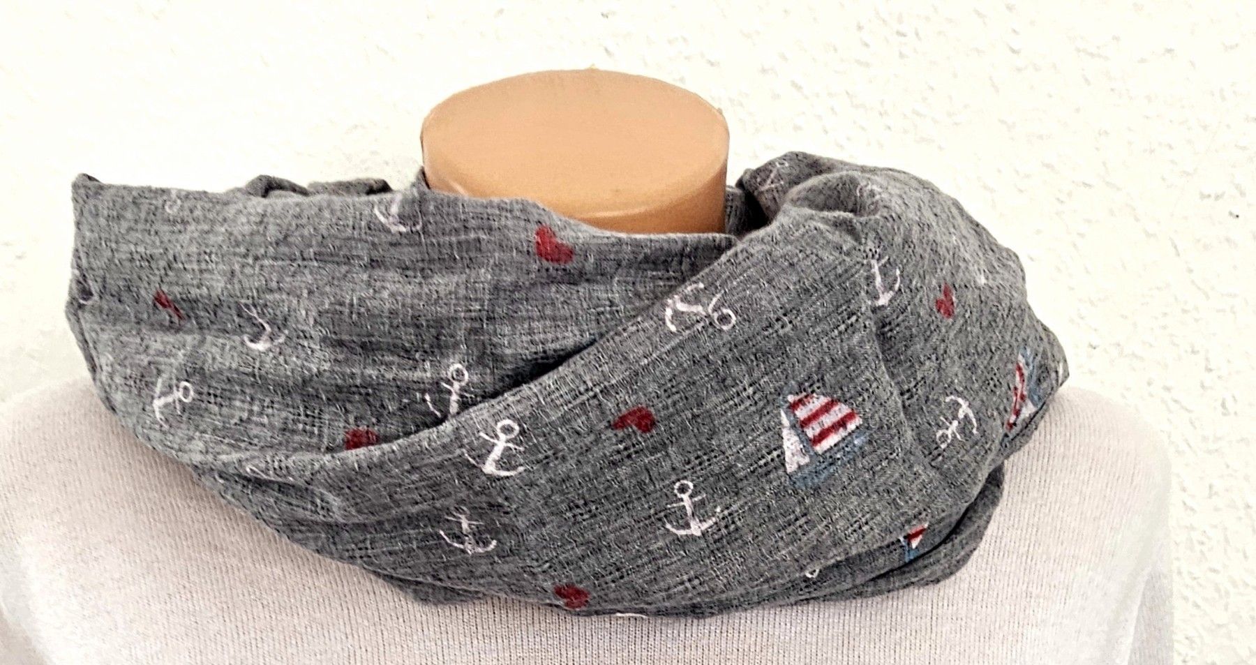 Blogger Loop Schal Tuch Halstuch Schlauchschal Viskose Anker/Herzen/Boote Grau