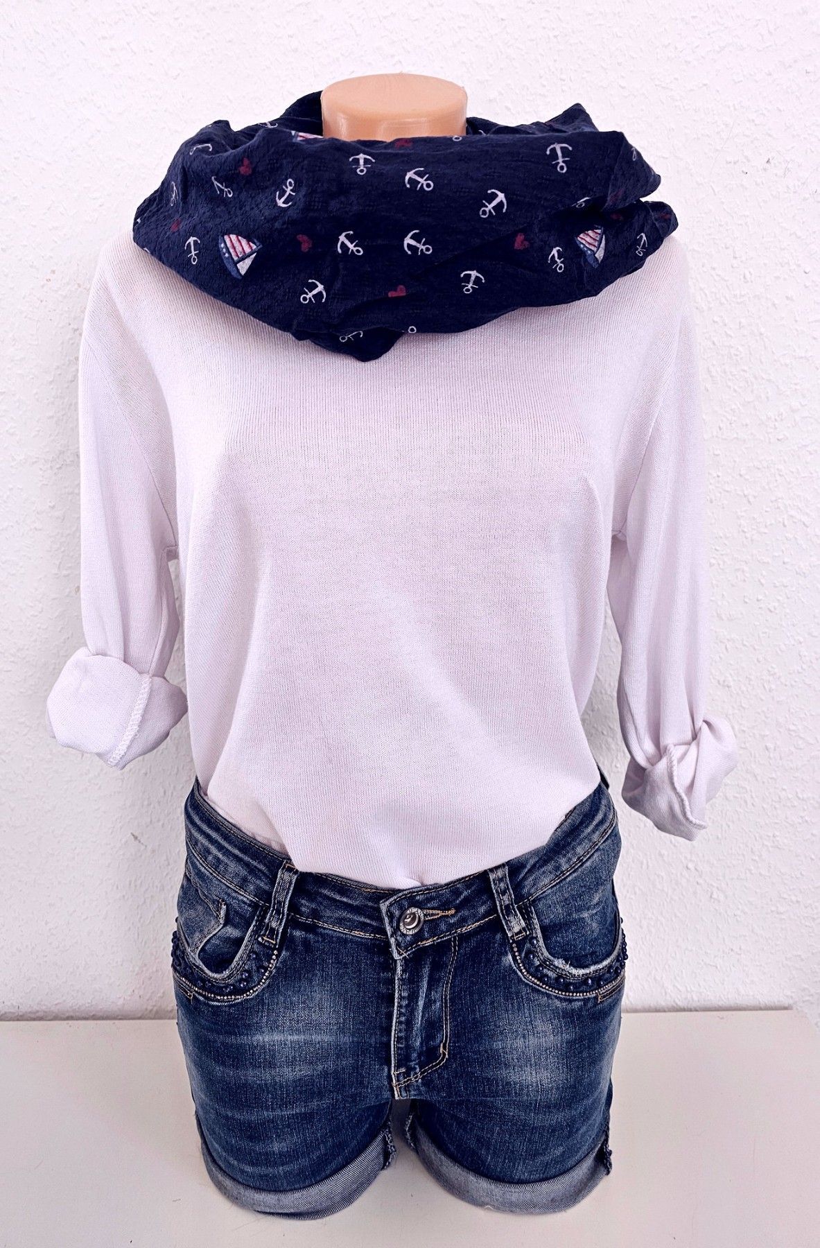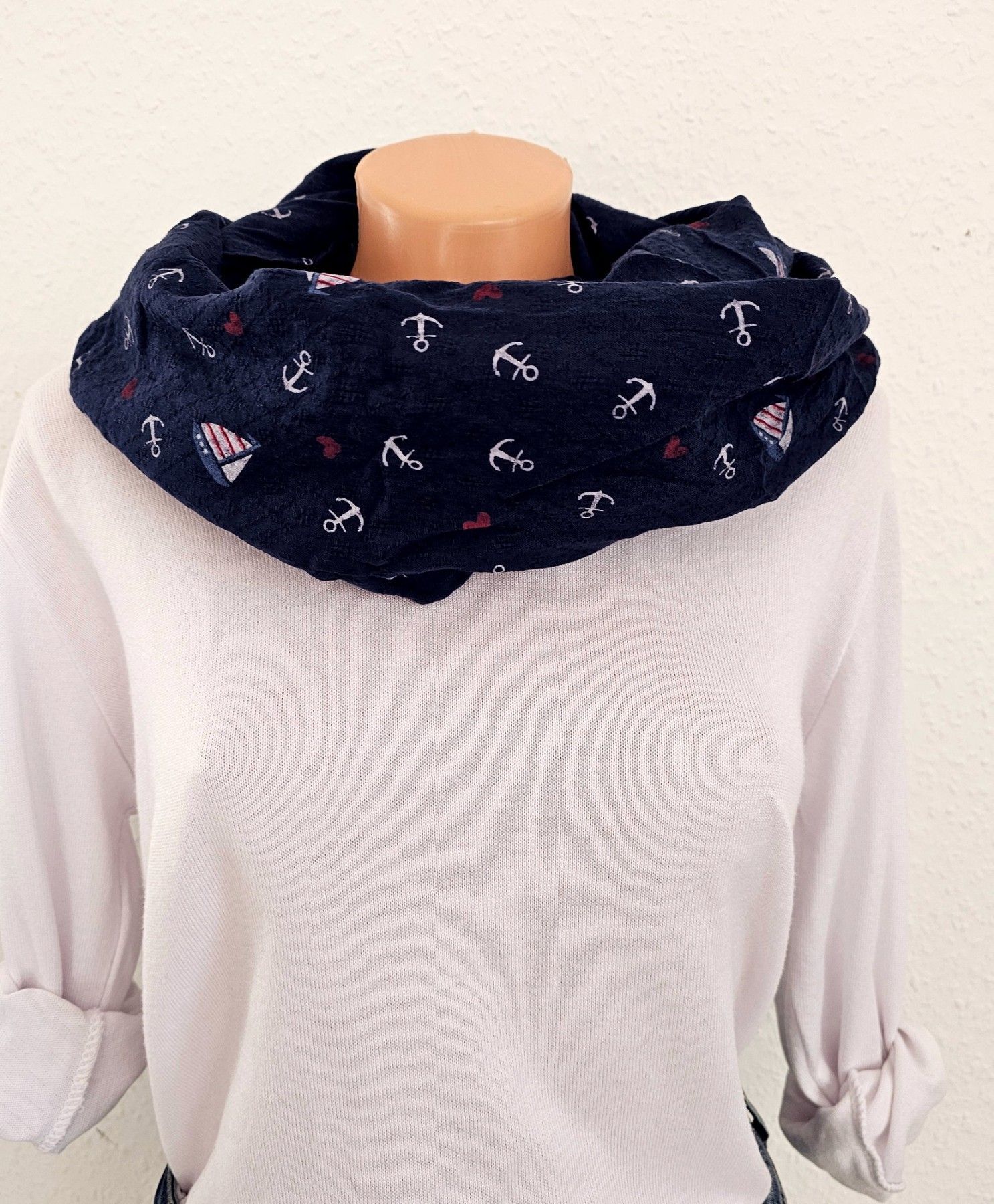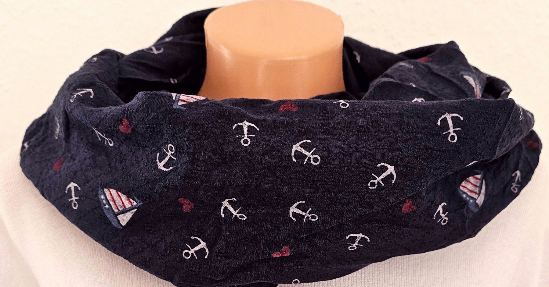 Blogger Loop Schal Tuch Halstuch Schlauchschal Viskose Anker/Herzen Dunkelblau