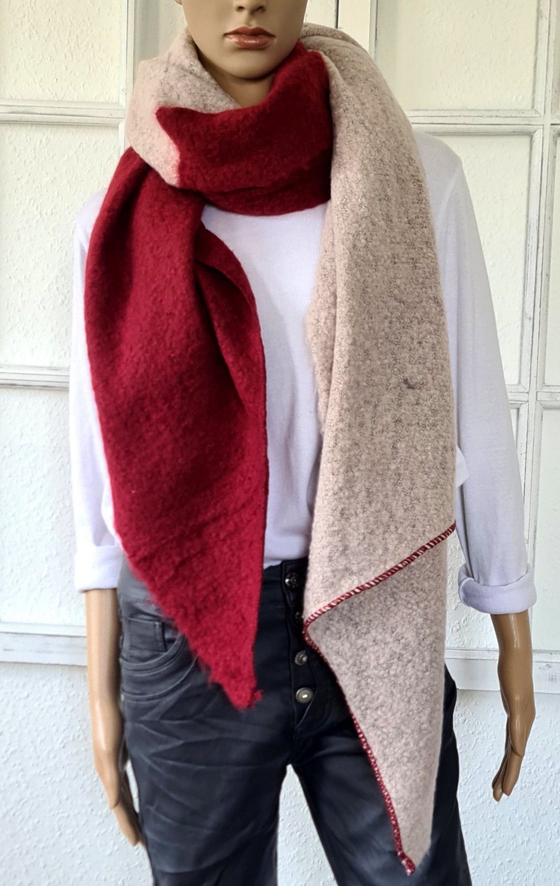 Blogger Super Flausch XXL Schal Tuch Scarf asymetrisch zweifarbig Dunkelrot/Rosa
