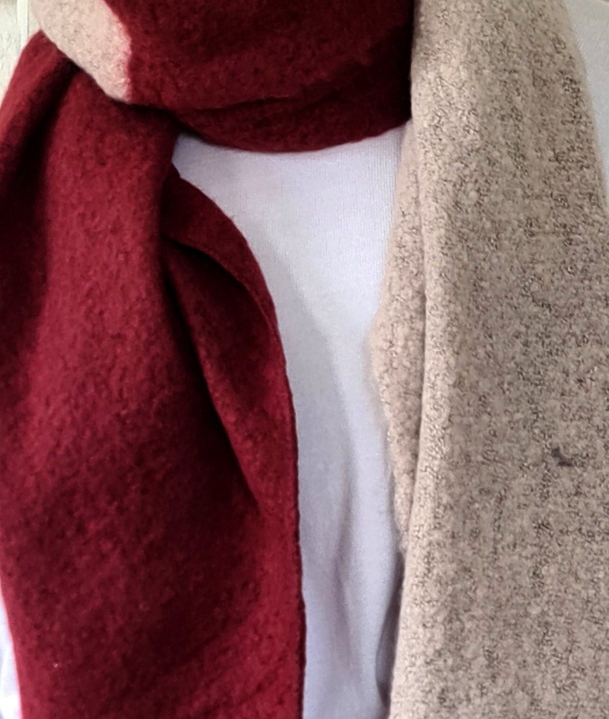Blogger Super Flausch XXL Schal Tuch Scarf asymetrisch zweifarbig Dunkelrot/ Rosa