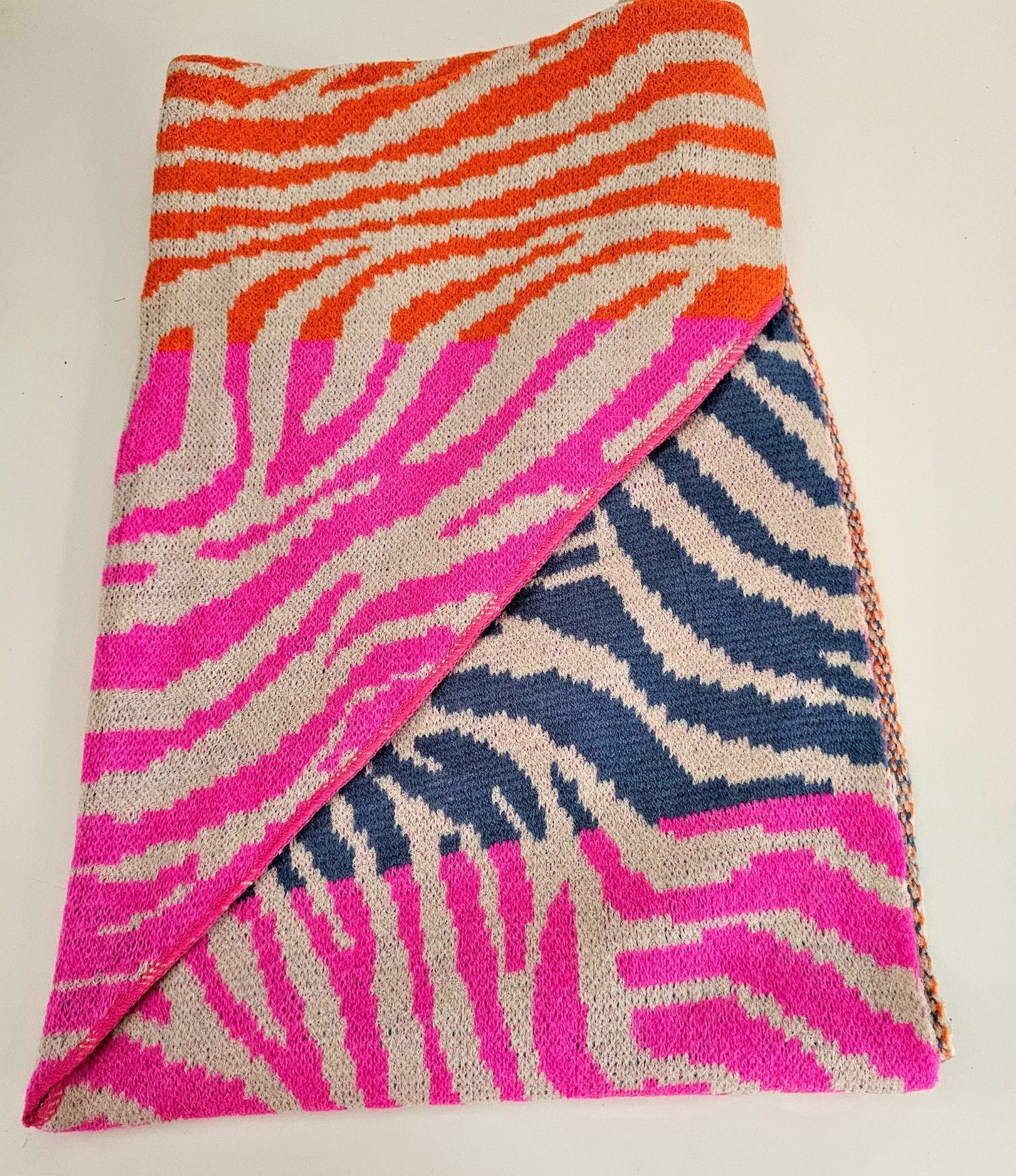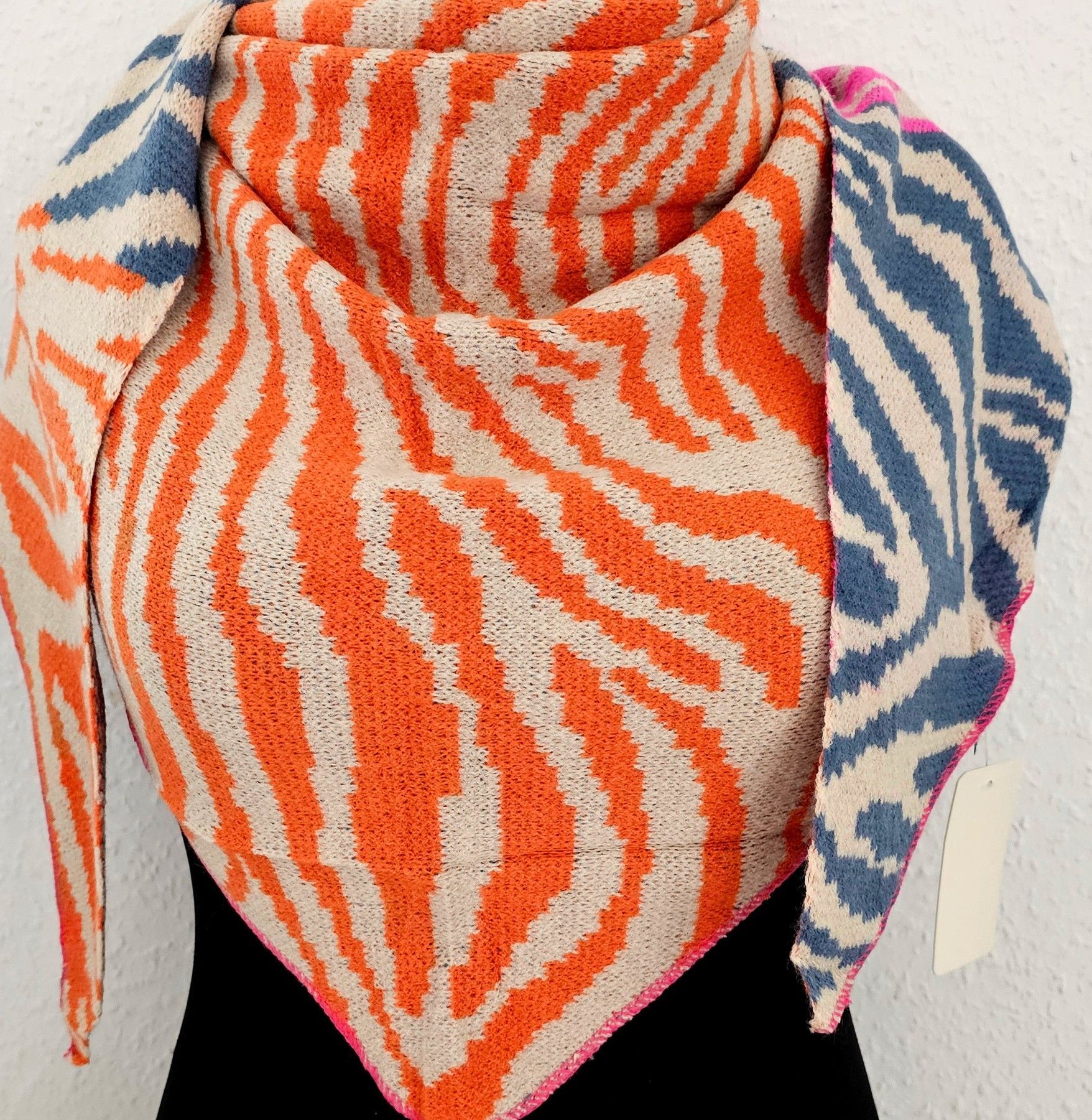 Blogger XXL Dreieckstuch Dreieckschal Kaschmir Streifenprint Orange/Pink/Blau