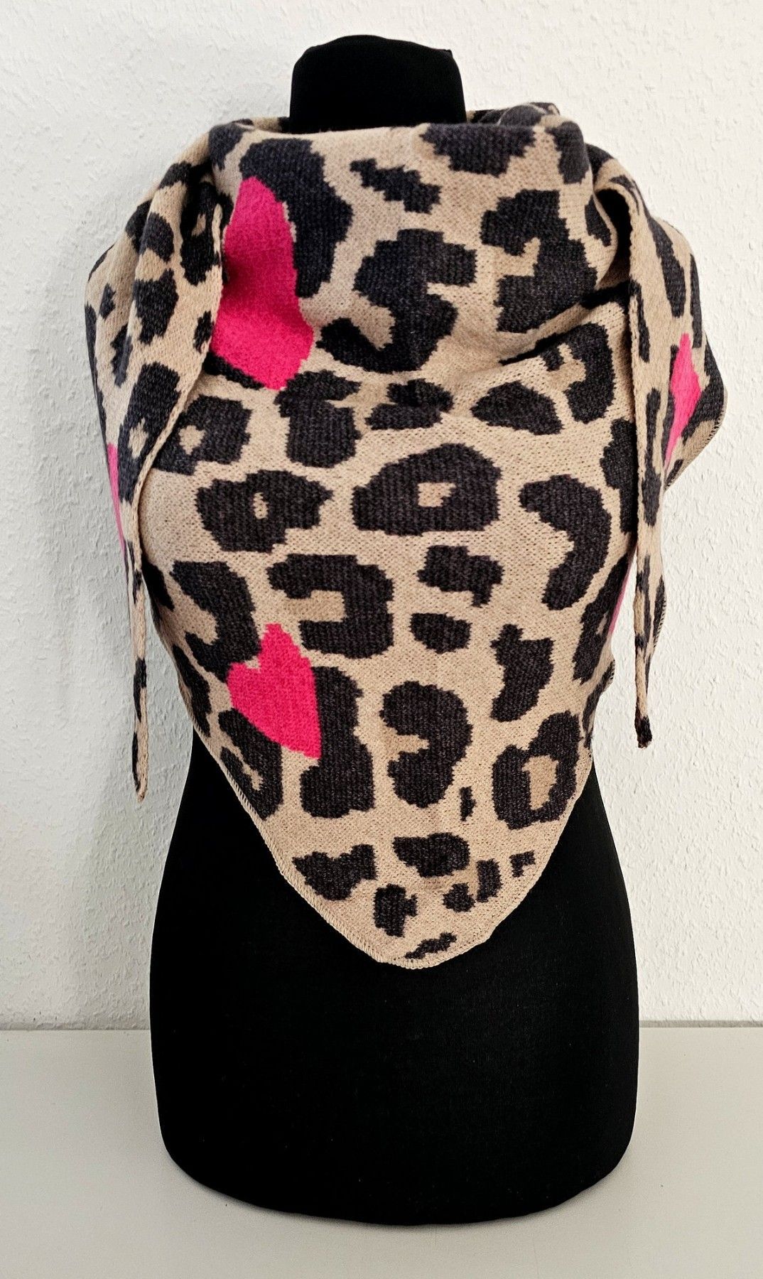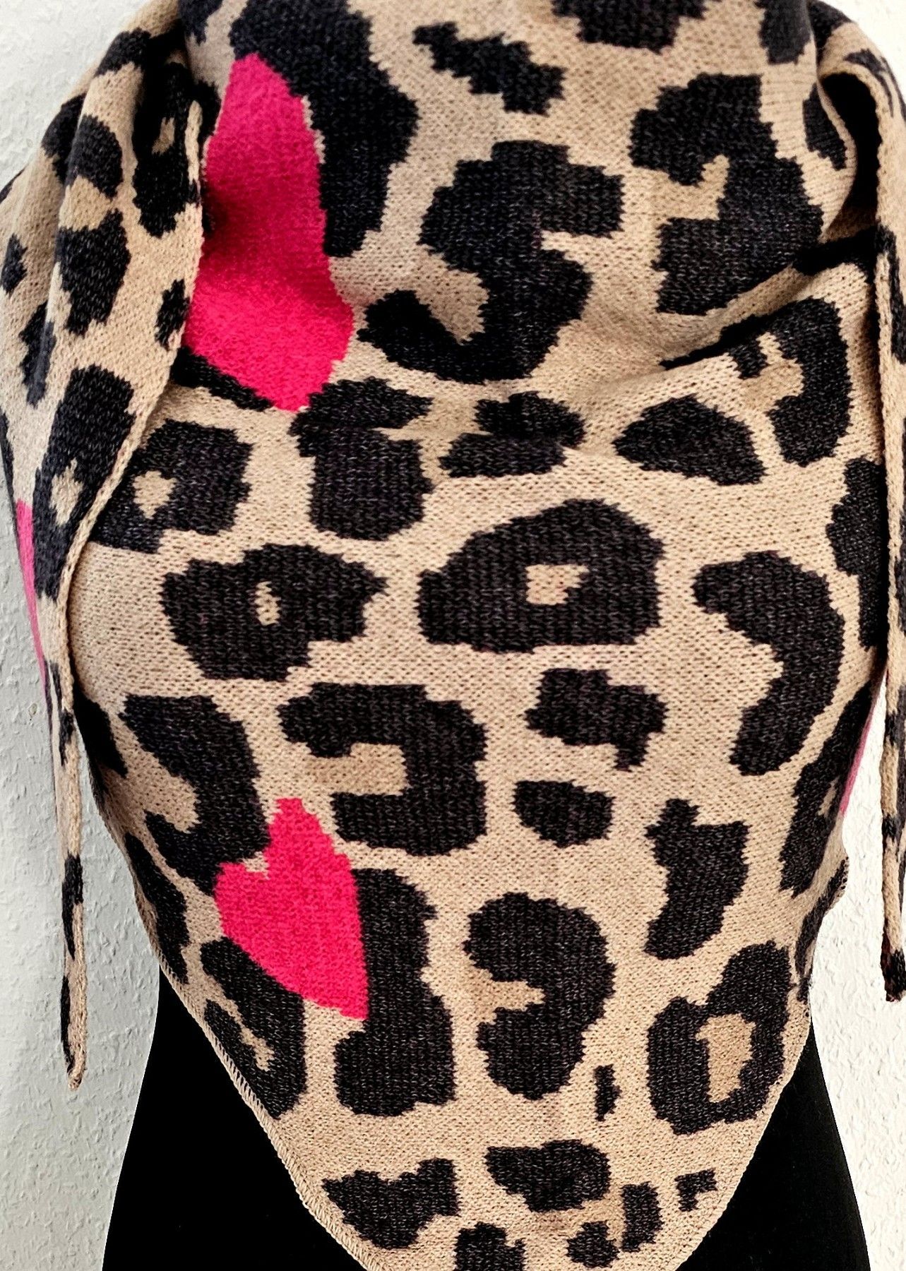 Blogger XXL Dreieckstuch Dreieckschal Tuch Viskose Animal/Herzen Beige/Schwarz/Pink
