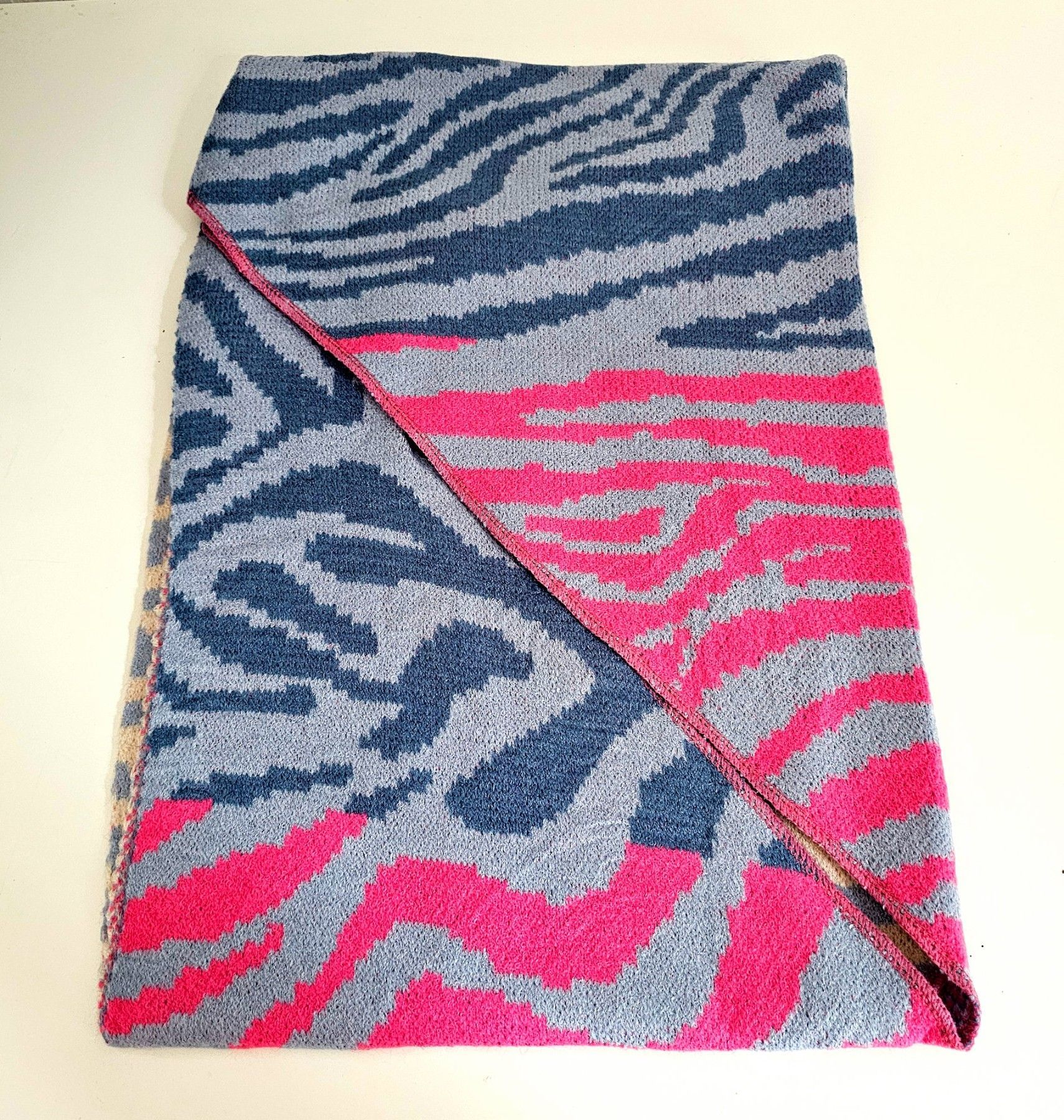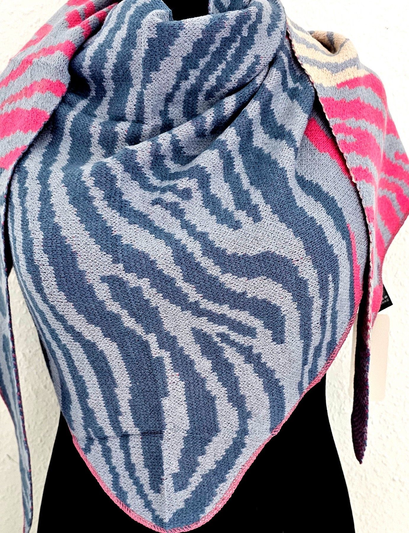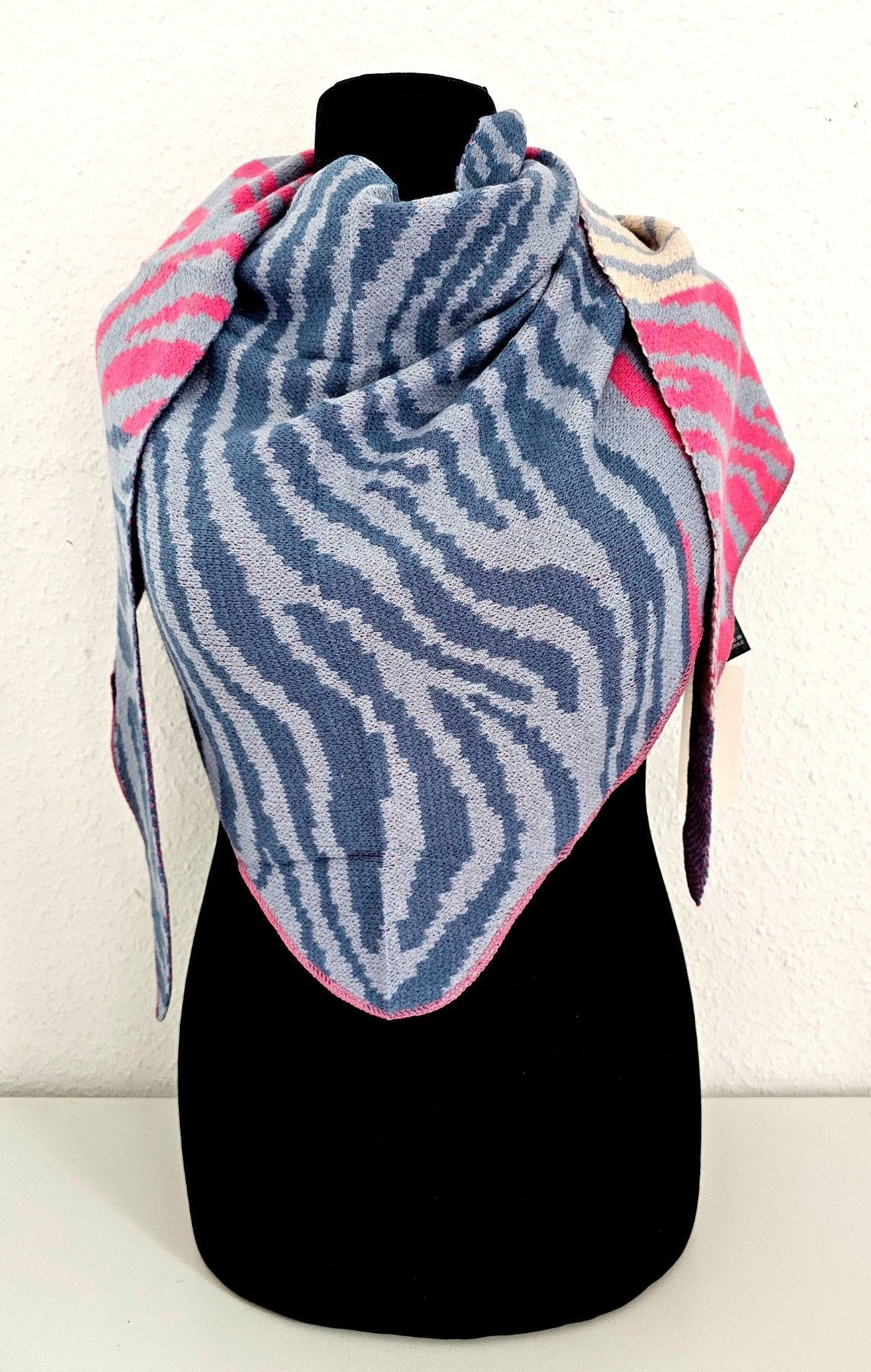 Blogger XXL Dreieckstuch Halstuch Dreieckschal Kaschmir Streifenprint Blau/Pink/Beige