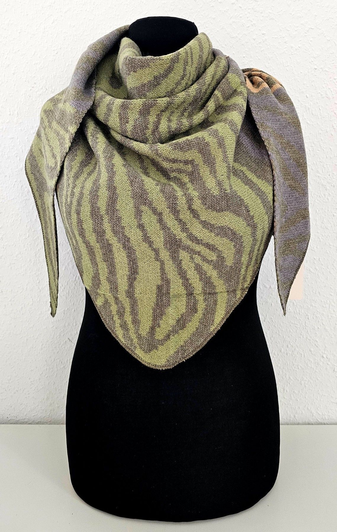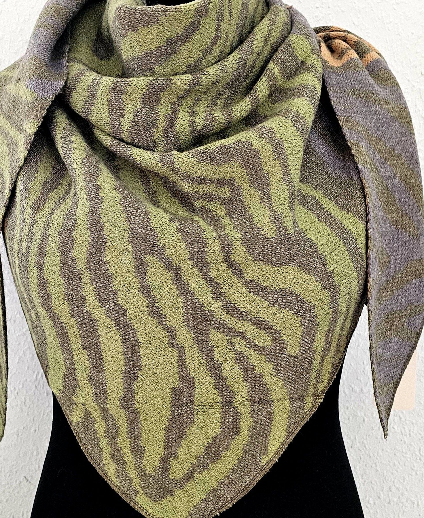 Blogger XXL Dreieckstuch Halstuch Dreieckschal Kaschmir Streifenprint Khaki/Grau/Taupe