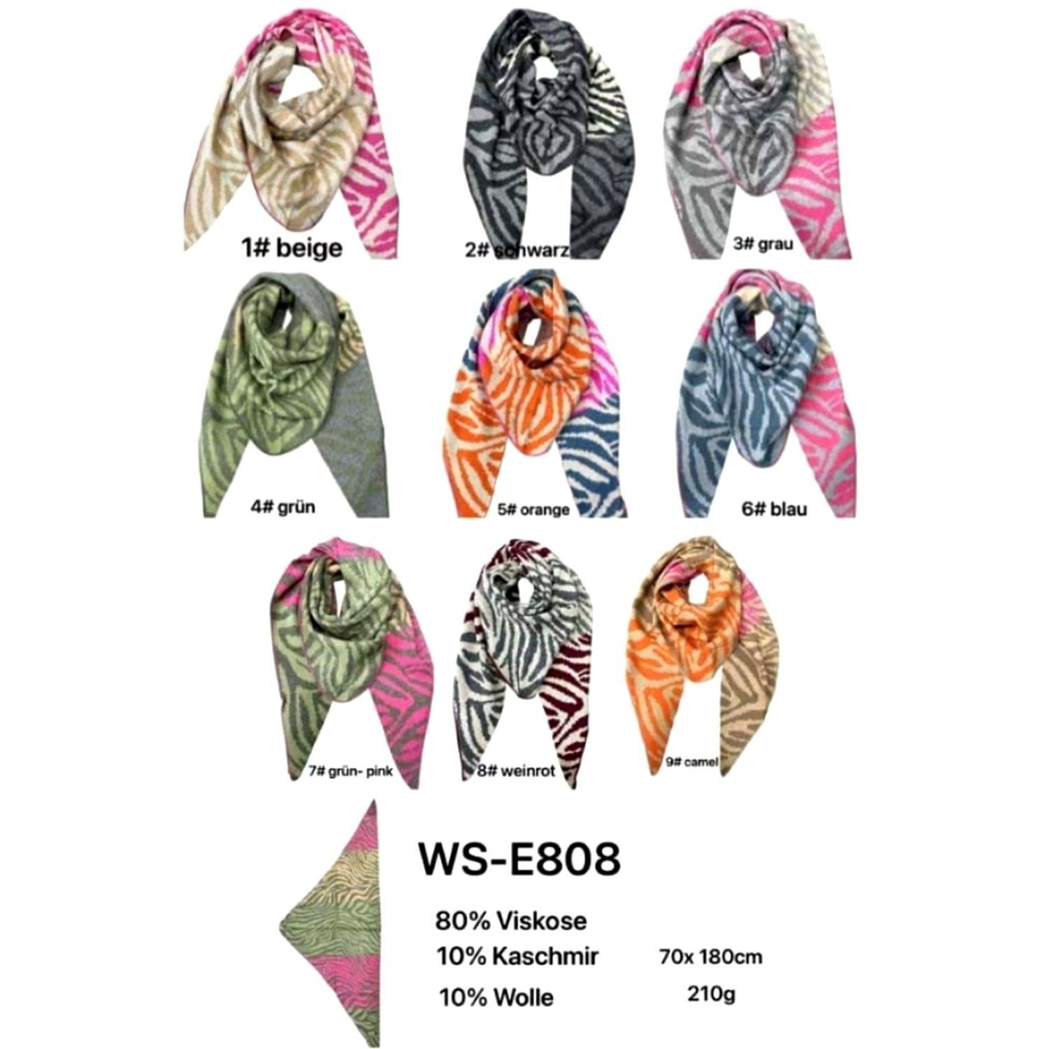 Blogger XXL Dreieckstuch Halstuch Dreieckschal Kaschmir Streifenprint Khaki/Grau/Taup