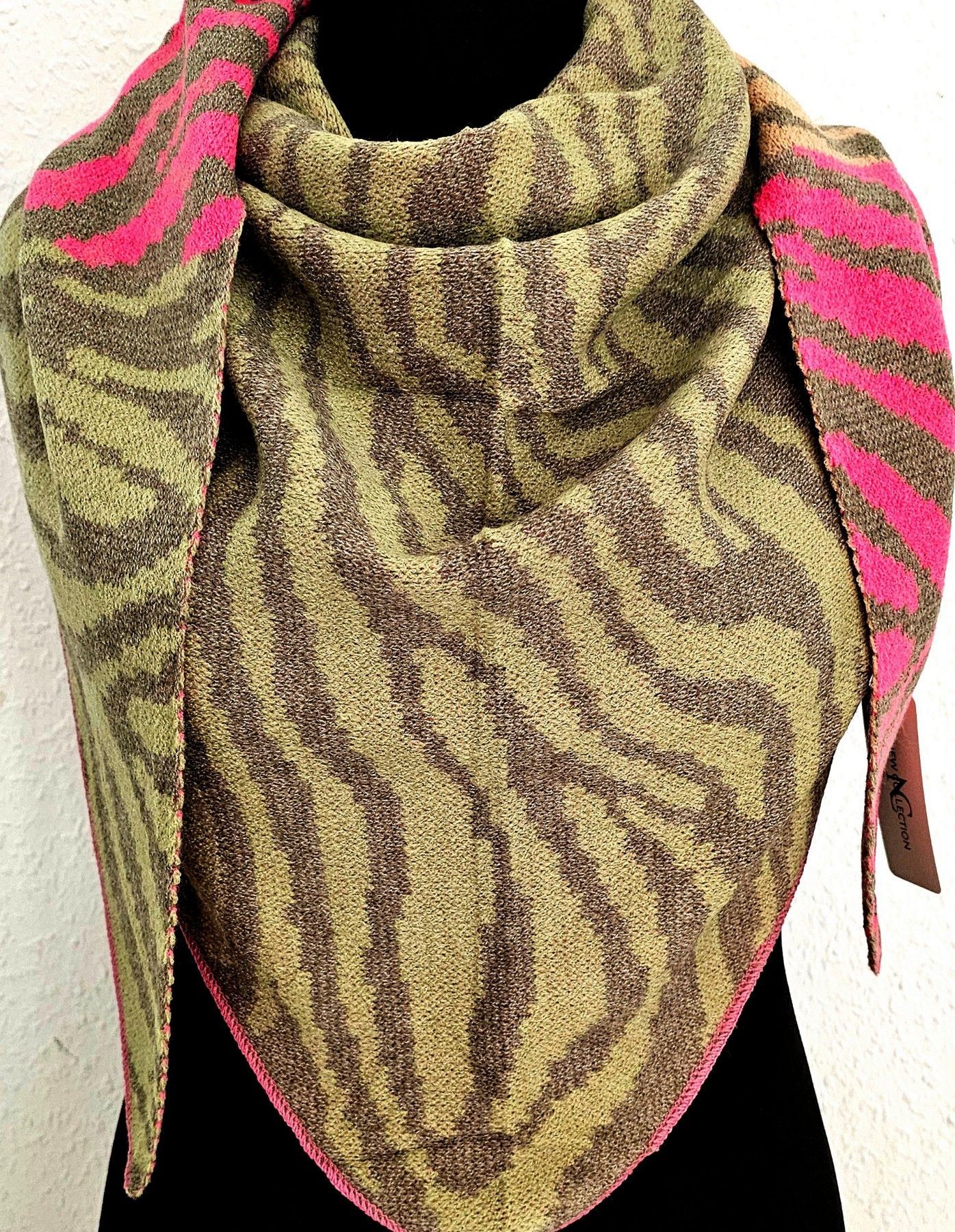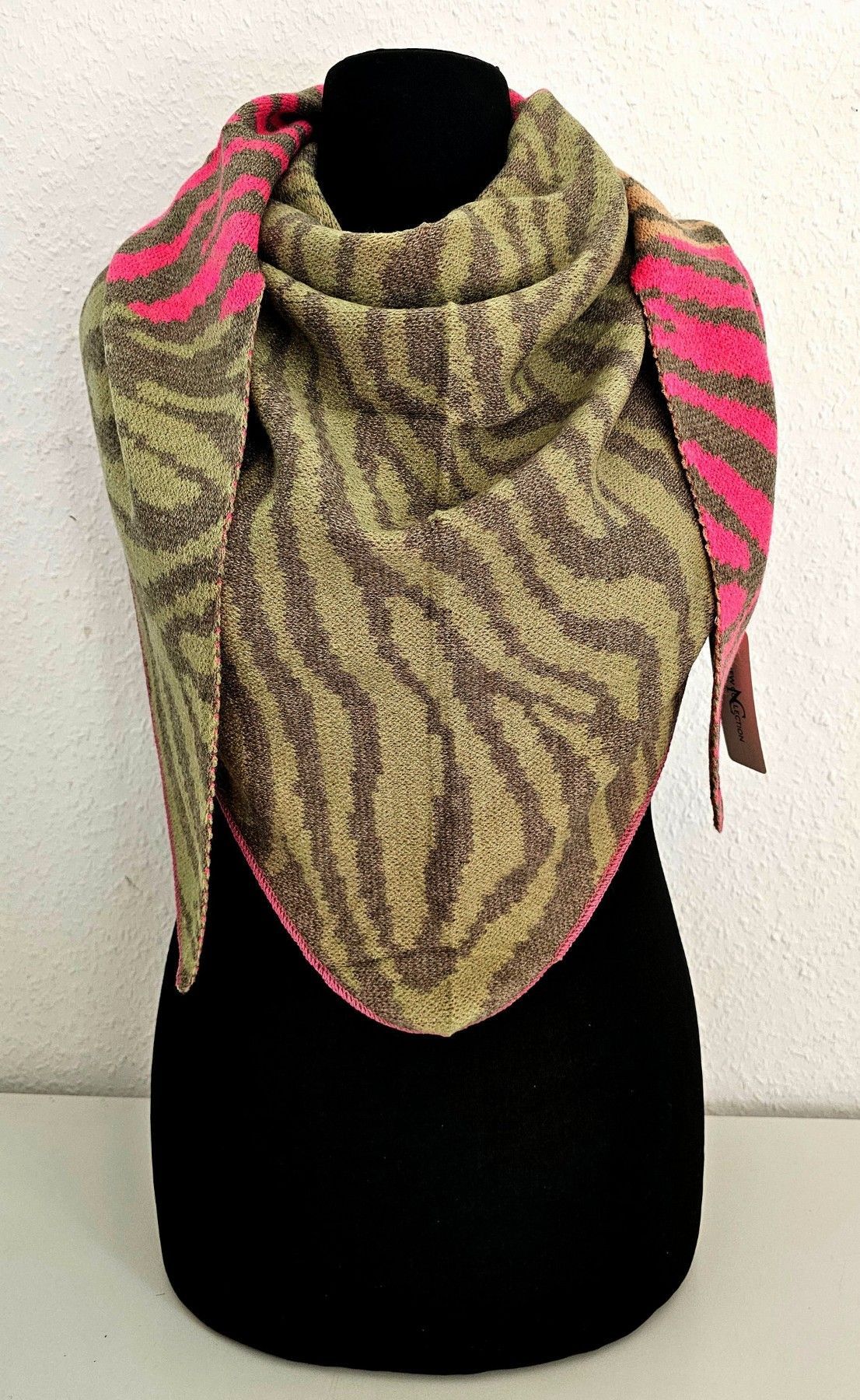 Blogger XXL Dreieckstuch Halstuch Dreieckschal Kaschmir Streifenprint Khaki/Pink/Beige