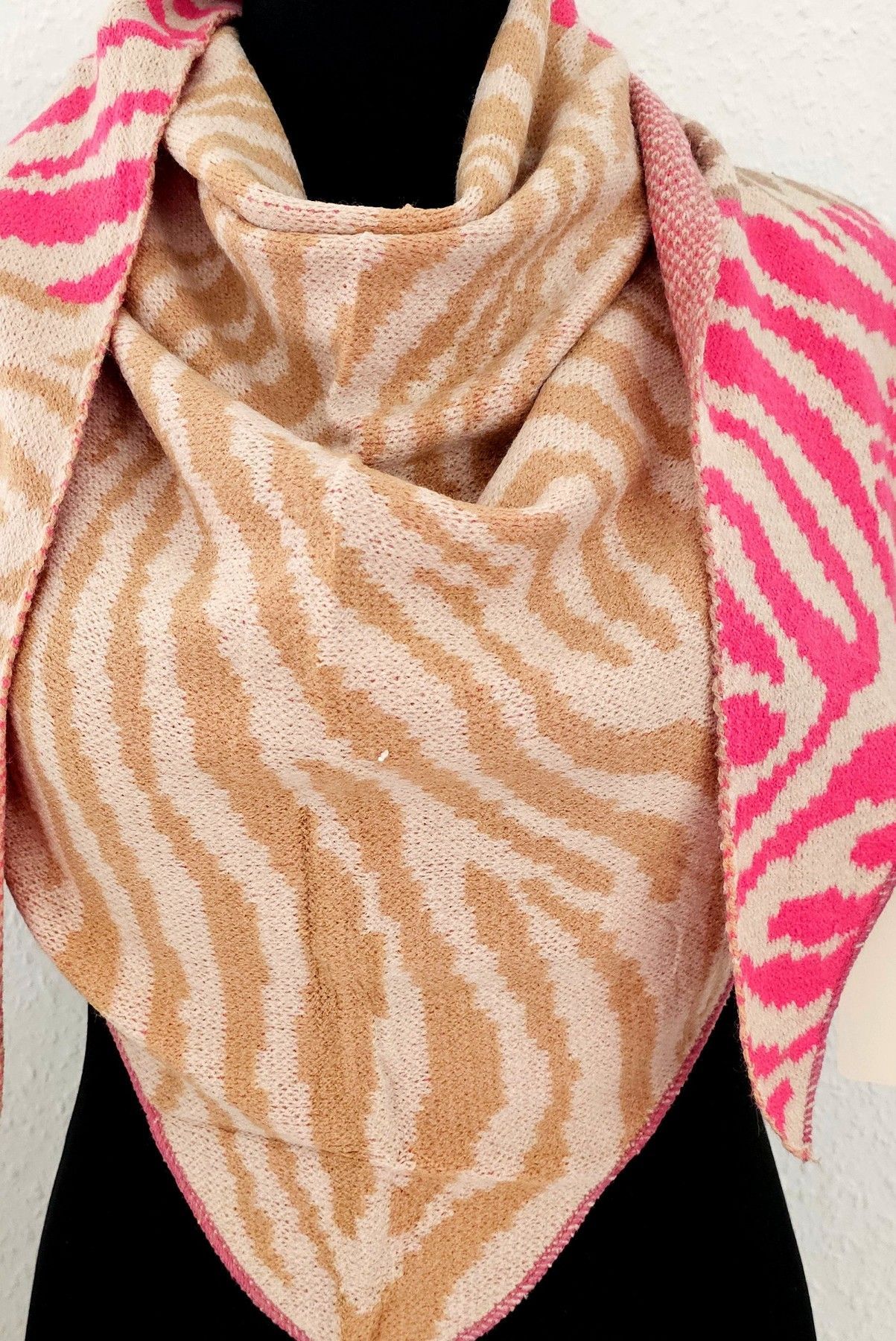 Blogger XXL Dreieckstuch Halstuch Dreieckschal mit Kaschmir Streifenprint Pink/Beige