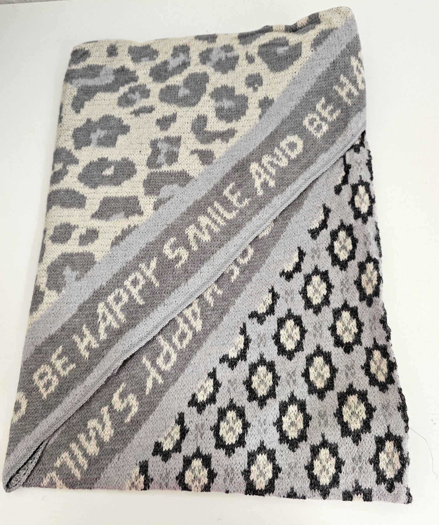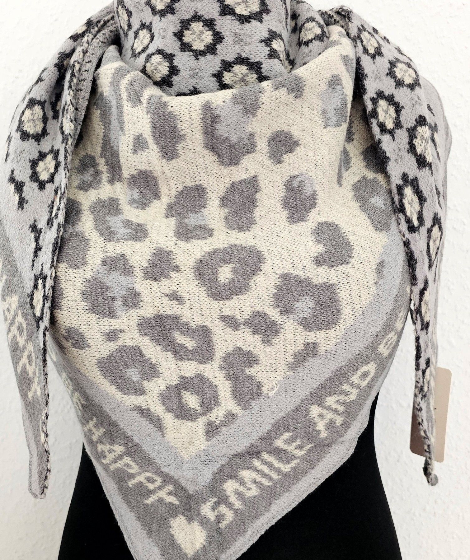 Blogger XXL Dreieckstuch Halstuch Schal Kaschmir Mustermix Schriftzug Grau/Beige