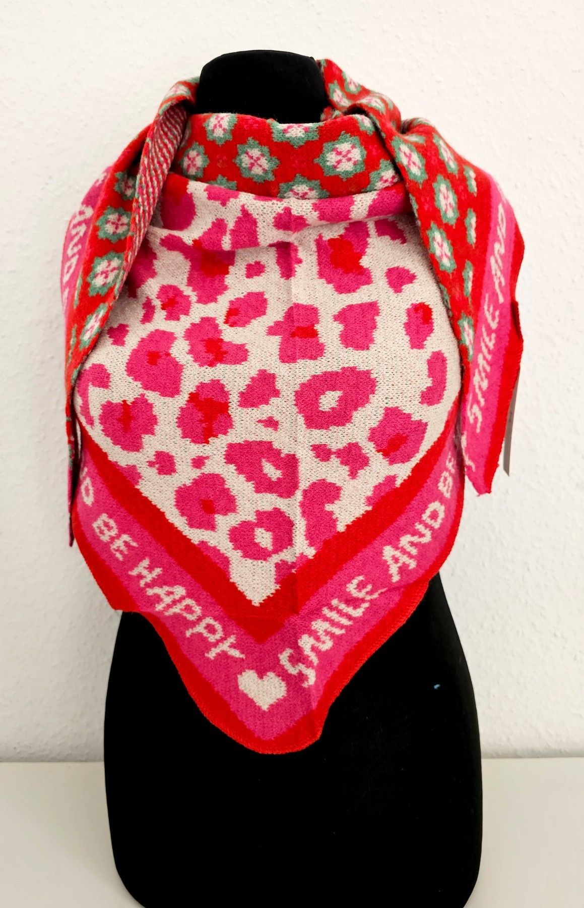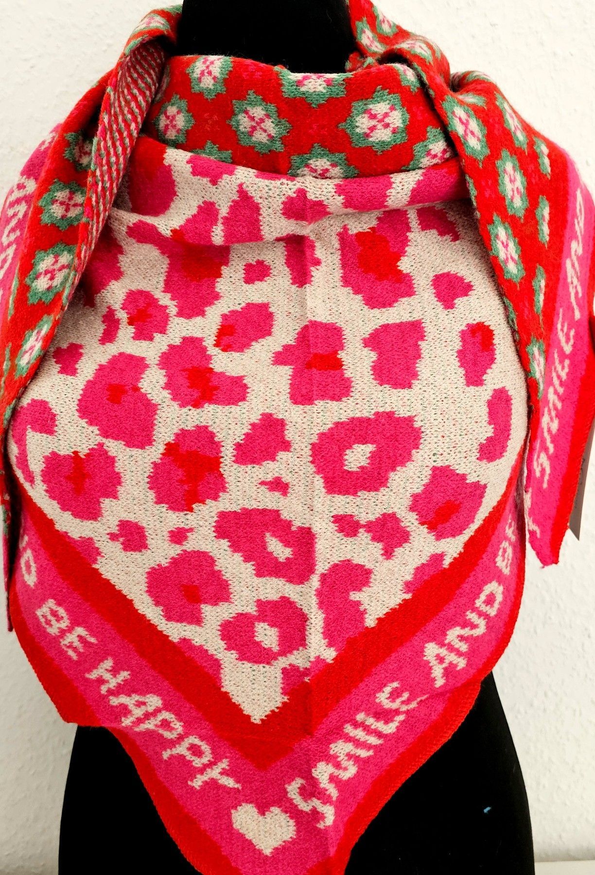 Blogger XXL Dreieckstuch Halstuch Schal Kaschmir Mustermix Schriftzug Rot/Pink/Grün